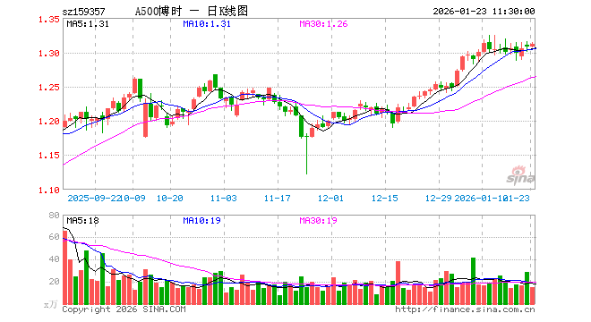 1月23日,截止午间收盘,A500ETF博时(159357)涨0.31%,报1.312元,成交额2012.94万元。A500ETF博时(159357)重仓股方面,宁德时代截止午盘跌0.36%,贵州茅台涨0.14%,中国平安跌0.35%,中际旭创跌6.10%,紫金矿业涨1.01%,招商银行涨0.00%,新易盛跌6.71%,美的集团跌0.63%,兴业银行跌0.10%,长江电力跌0.65%。