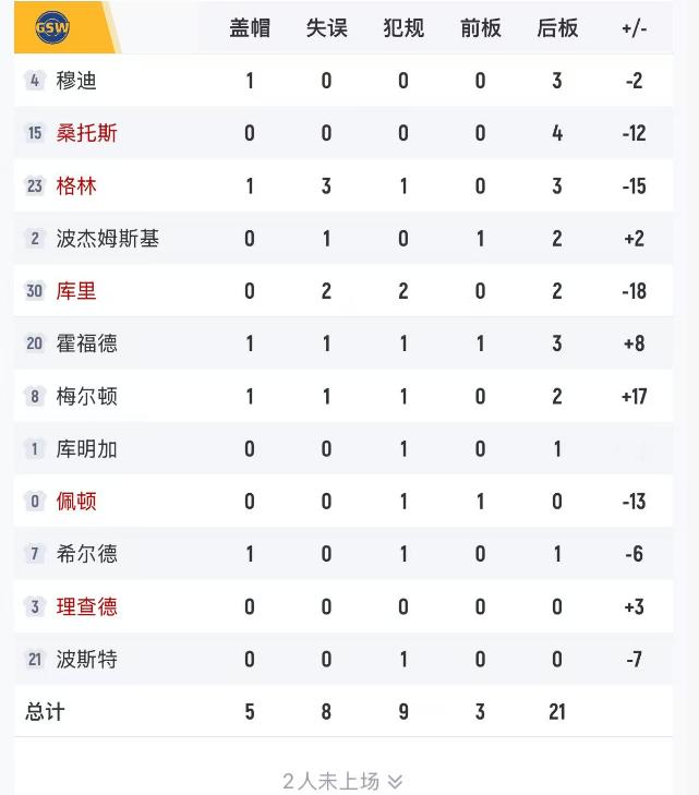 勇士首发挖坑替补填坑 半场比赛结束,勇士首发5人只有波杰的正负值为正而替补阵容有