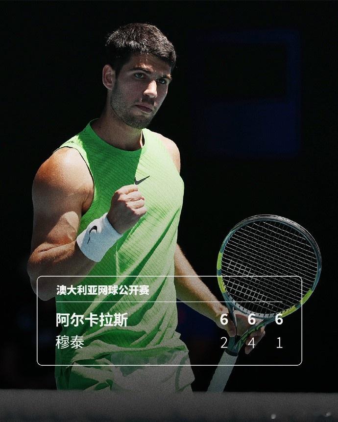 直播吧1月23日讯澳网男单第三轮,阿尔卡拉斯3-0轻取穆泰晋级16强。