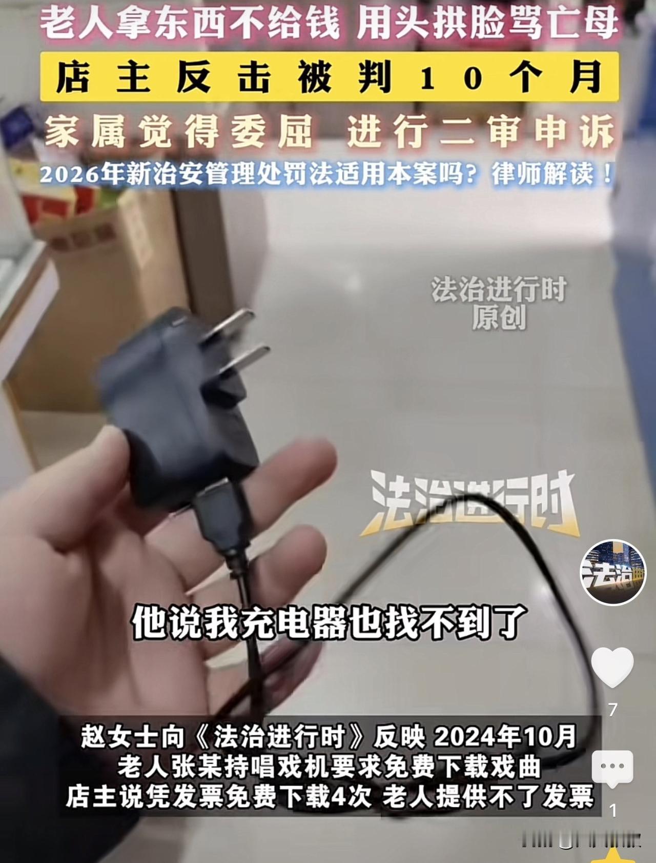 江苏徐州,一老人拿着别人送的唱戏机到店里下载戏曲,因为拿着发票可以免费下载四次,老人表示发票找不到了,而且充电线也找不到了,店主于是给老人拿了一根充电线,谁料老人拿着线就要往外走,当店主提醒后,老人又对店主实施了辱骂,还拱着头撞店主,结果店主一回手,给自己带来了十个月的刑期,店主对此感觉自己很冤。 据悉,男子陈某开了一家音像店,事发时,老人张某拿着别人送的唱戏机到陈某的店里下载戏曲,如果有购买票据,是可以免费享受四次下载服务的,如果没有购买记录,是要收取10元服务费的,所以,陈某便要求对方提供相关票据。 然而,张某表示自己的票据找不到了,而且充电线也找不到了,于是,陈某就拿了一根新的充电器递给了张某,谁知张某接过充电器后,就往门外走。 按照陈某妻子的说法,看到对方没有付钱的意思,于是陈某便提醒了对方,可是,让人始料未及的是,张某竟然辱骂起了陈某刚刚过世的母亲,而且还用头去拱陈某的脸部。 陈某就被张某连骂加拱的,从桌子柜台拱到了大门口的柱子上,陈某的脸部也被张某给拱肿了。 忍无可忍的陈某当即还击了一下,这一下直接将张某打倒在地,随后,张某被120给接走了。 事后,经过伤情鉴定,张某因鼻骨骨折被鉴定为轻伤二级,而陈某也因故意伤害罪,最终被判刑十个月。 对此,陈某的妻子赵女士表示,这个事情我们比较冤的地方在于一对方拿东西不给钱,第二就是辱骂我婆婆,第三是用头拱。赵女士同时也提到,丈夫没有打对方鼻子,怎么会骨折了?这个有点太过分了。 其实,事情的关键,就在于是谁先动的手。 关于依法适用正当防卫制度的指导意见提到,因琐事发生争执,双方均不能保持克制而引发打斗,对于有过错的一方先动手且手段明显过激,或者一方先动手,在对方努力避免冲突的情况下仍继续侵害的,还击一方的行为一般应当认定为防卫行为。 本案中,张某先骂的人,而且用头去拱陈某,显然张某过错在先,但是,无论是辱骂还是用头去拱陈某,都不会导致陈某因此遭受轻微伤以上的伤情,所以,站在事后以正常情况下去评判的话,很难去认定挥手反击的行为是正当防卫。 可是,关于依法适用正当防卫制度的指导意见还提到,防止在事后以正常情况下冷静理性、客观精确的标准去评判防卫人。 那么,当陈某被张某辱骂了其刚刚过世的母亲,显然侵犯了陈某及其母亲的名誉权,因此这也是一种违法行为,而张某用头去拱陈某,陈某被张某拱到了门口,此时的张某,又侵犯了张某的身体权,加上张某拿着充电线离开,即便陈某去阻拦,也是属于自助行为。 所谓的自助行为,按照民法典的规定,指的是合法权益受到侵害,情况紧迫且不能及时获得国家机关保护,不立即采取措施将使其合法权益受到难以弥补的损害的,受害人可以在保护自己合法权益的必要范围内采取扣留侵权人的财物等合理措施;但是,应当立即请求有关国家机关处理。 所以,陈某阻拦张某,也是法律赋予的权利。当然,如果确实是张某先辱骂的,又用头去撞击陈某,还拿着充电线想要不付款离开的话,去认定陈某的行为不属于正当防卫,不免让人怀疑。 事发后,有人认为老人的行为就是抢劫,应该把老人也判了,还有人觉得,事情可能没有店主妻子说的那般简单,就挥手推了一下或者挡了一下,对方就骨折了? 对此,你对本案有什么看法? —————————— 关注我,带你评析法律热点,关注冷暖人生。 文章原创,抄袭必究