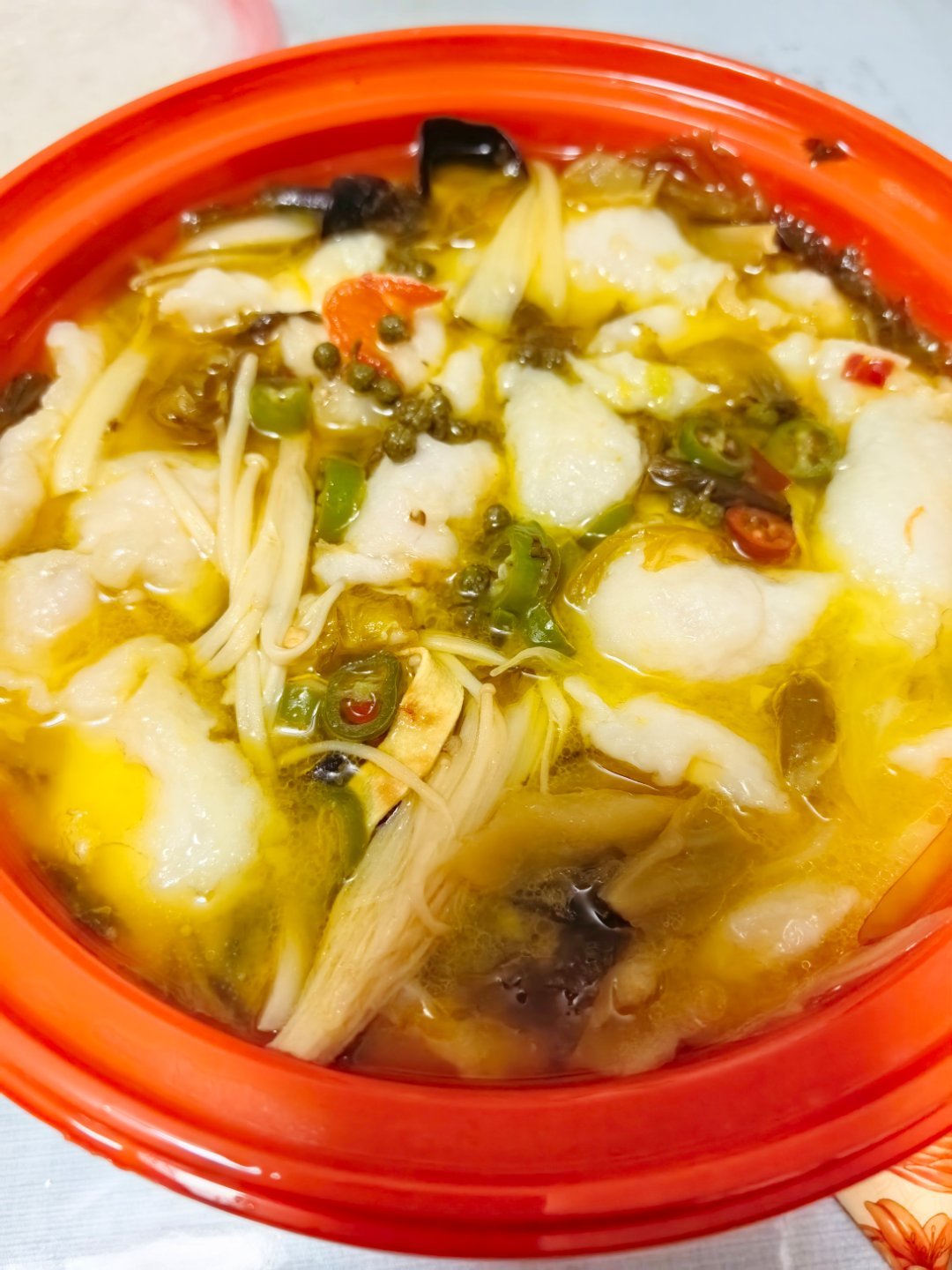 跟娃出去玩回来的属实有点晚来不及整烦了,点个青花椒酸菜鱼吃,还暖和开动~