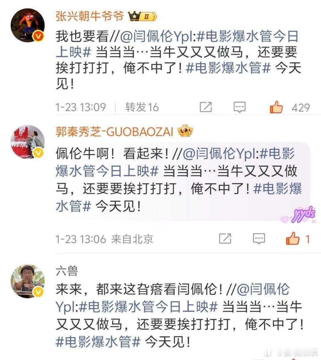 喜人打call也要演小品吗 闫佩伦新片爆水管上映,喜人全员九条命集结打call,结果一个个比电影还搞笑,教主问周几打的,王广评论区乱入,这精神状态太对味了