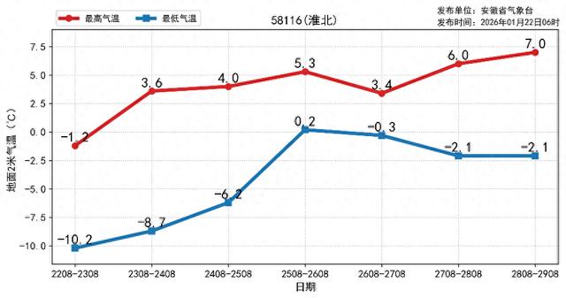 气温方面:24日前全省有持续性低温冰冻天气,今天早晨气温较低,淮河以北最低气温-10~-8℃;江淮之间东部-7~-5℃;江淮之间西部和江南-5~-2℃。