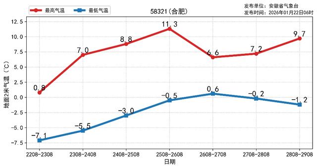 冷空气过后,27日早晨最低气温:淮河以北-1~1℃;淮河以南2~4℃。