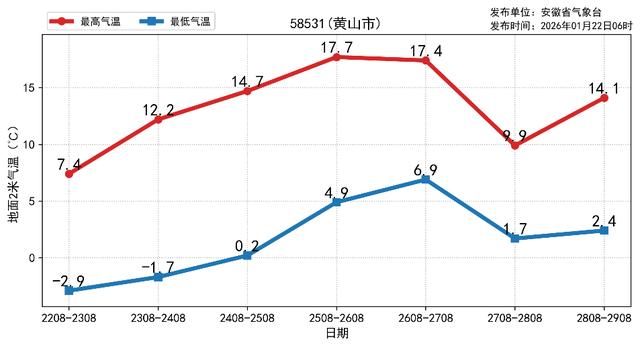 具体到安徽,26日有弱冷空气影响我省,淮河以南大部分地区平均气温将下降3~6℃。