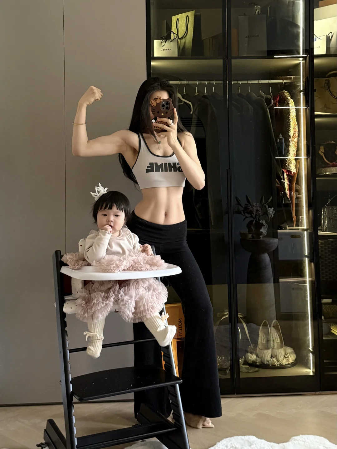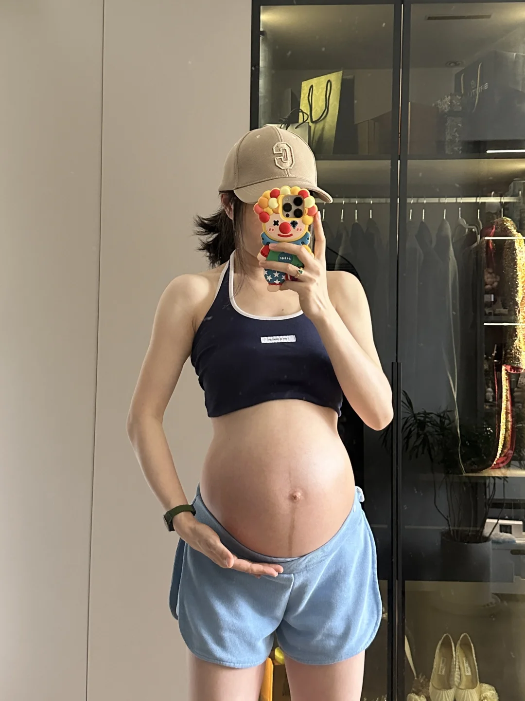 这个阶段没啥特别好说的,前三个月孕反严重,躺床上为主,第四个月开始每周2-3次普拉提私教课,一直到孕晚期跳跳孕期操,整个孕期增重20斤,只涨了肚子,四肢变化不大也涨了点。孕晚期还有马甲线,最后预产期当天无侧切无撕裂顺产一个6.6斤的宝宝