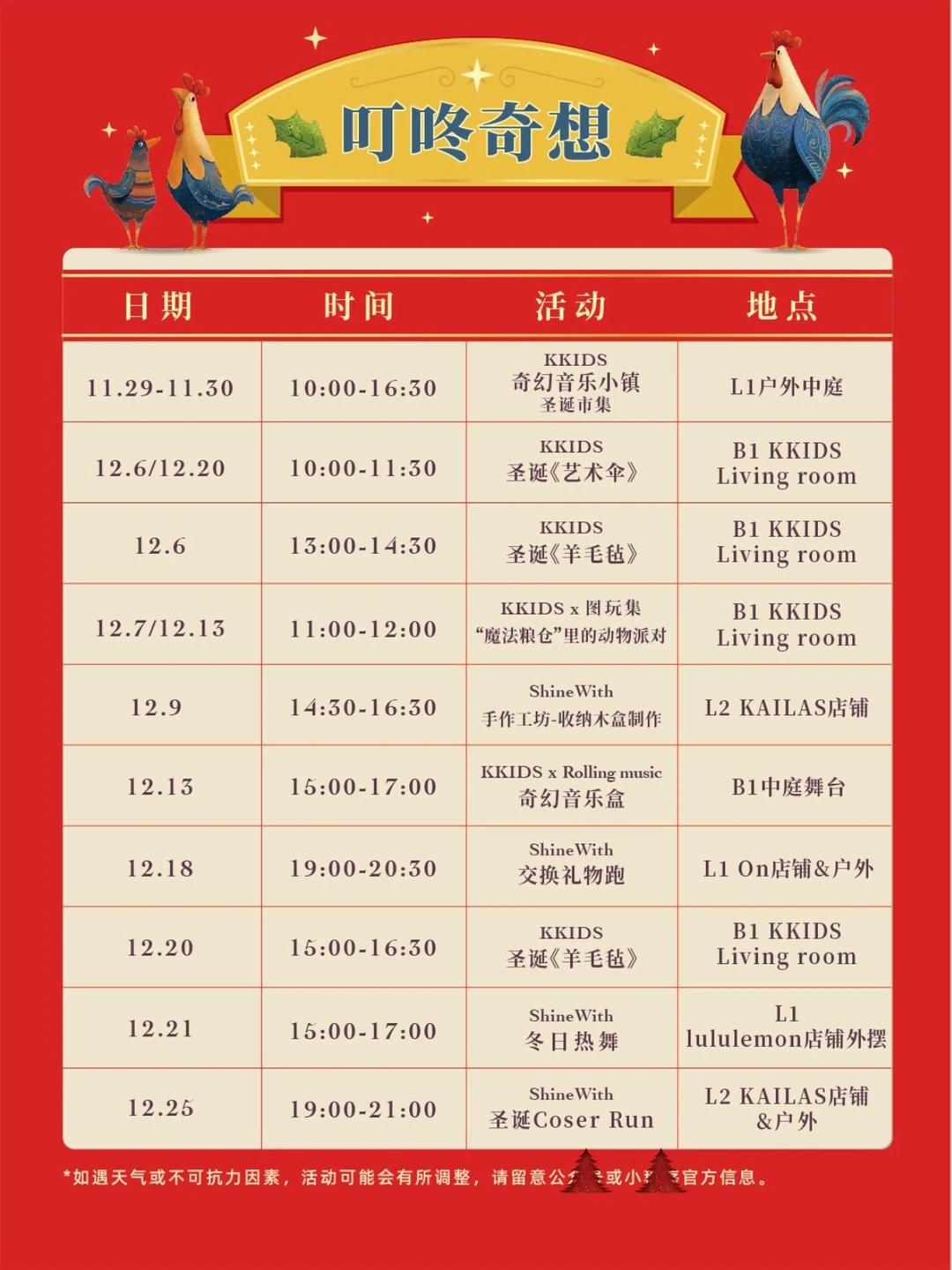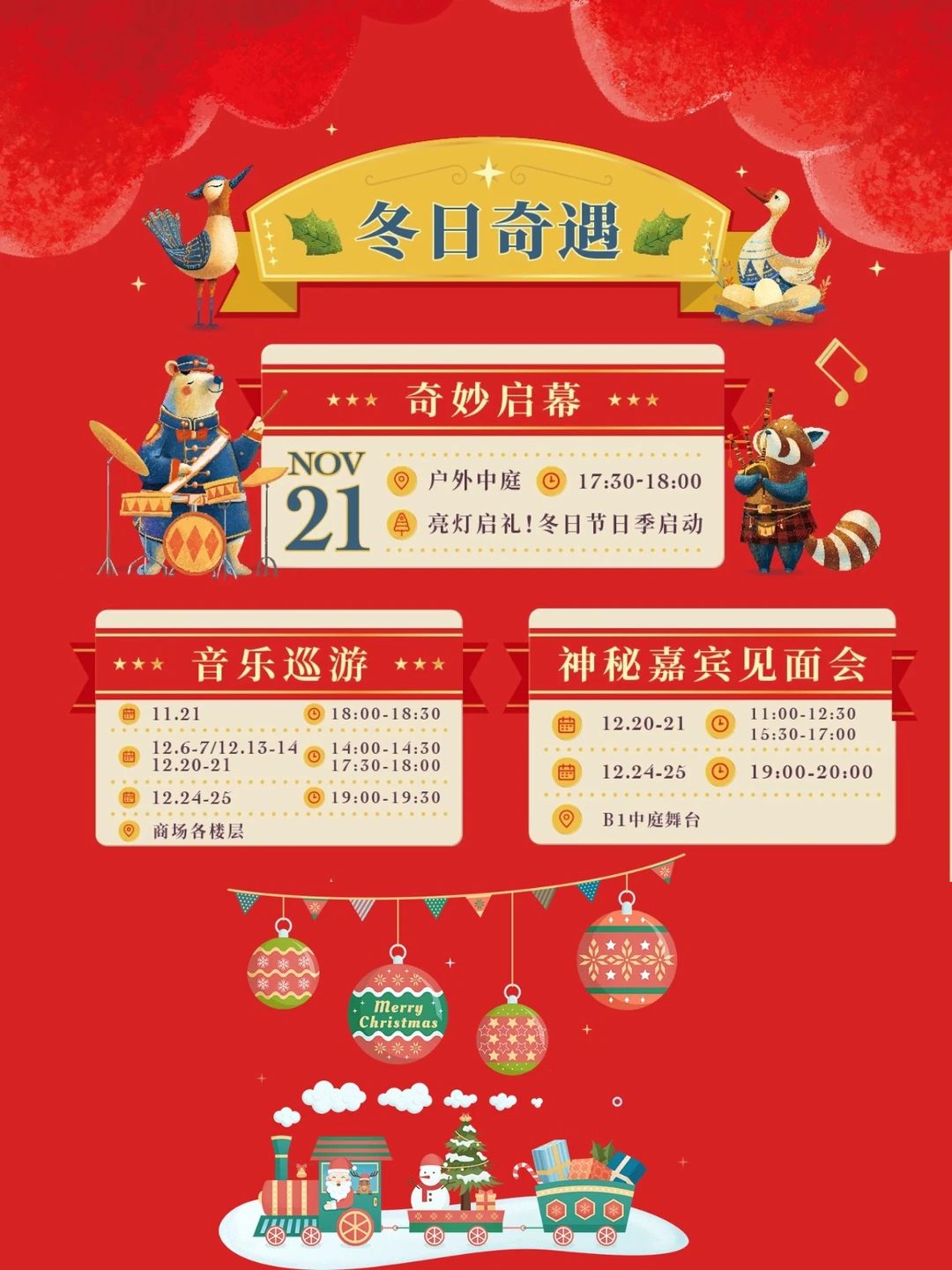 1️⃣ 重点来啦!11.21 17:30-18:30 亮灯仪式!还有圣诞文艺表演+巡游,错过等一年~