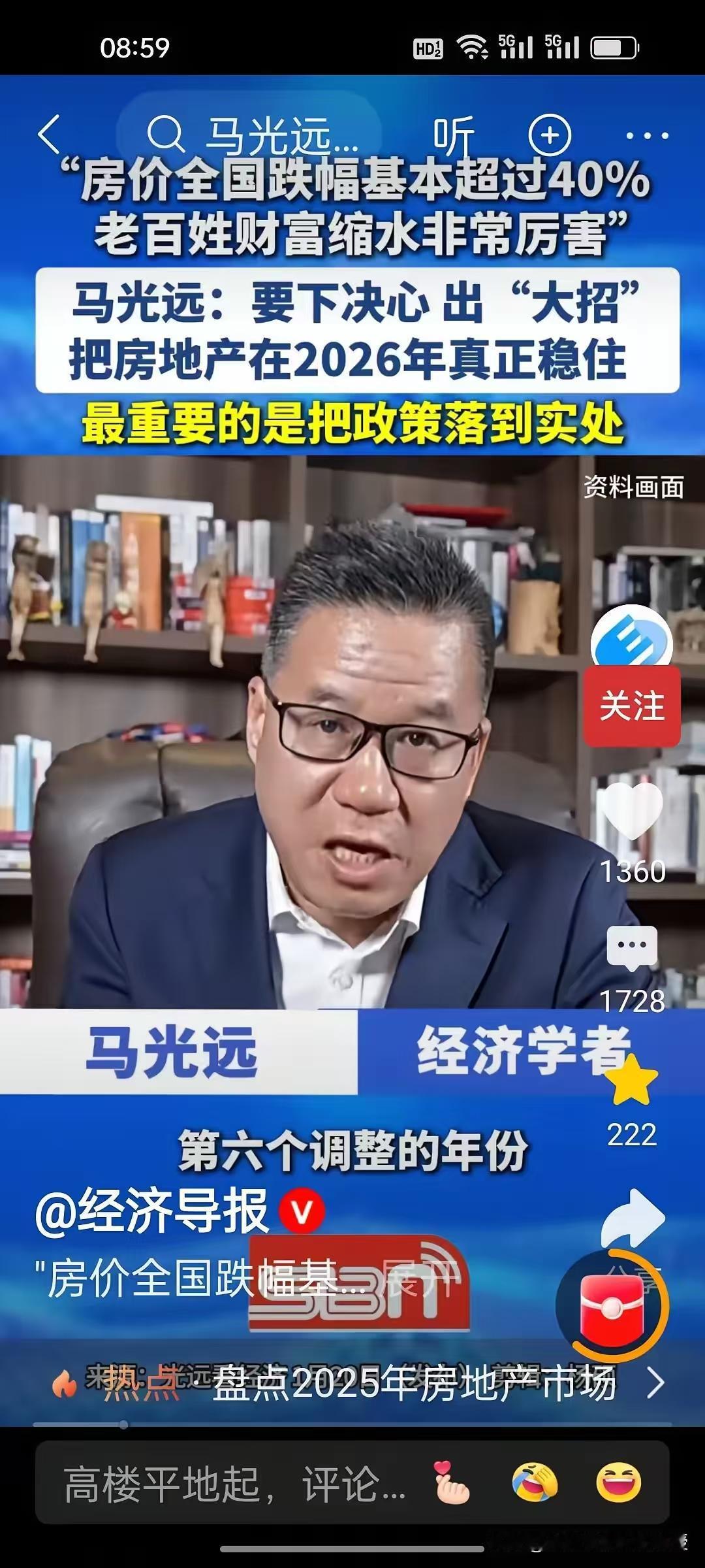 马光远房价不能再低了,必须稳住要不然老百姓财富缩水严重!他强调,2026年的政策不能再停留在文件里,必须落到实处。房价稳不住,消费就起不来,内需就扩不开,这早已不是行业问题,而是关乎每个人钱袋子的民生命题。 最近几年房价跌了老百姓才有买房的希望,这可到好,专家还想继续涨价。 这些专家整天想着的不是让老百姓买得起房,而是让老百姓买不起房。让财富永远掌握在富人手里。 一个国家幸福指数是每个人买得起房子住得起,不是拿想让老百姓拿三千的工资买几百万的房子,让老百姓几代人做房奴。 只有房价降下来,和老百姓的当地收入在一个合适的比例,老百姓才能消费,要么老百姓的收入都用来还房贷,谈何消费。