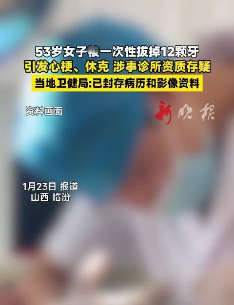 女子一次性拔12颗牙休克,种牙咨询竟被拔光12颗牙,差点把命搭上 山西曲沃这起拔牙事件,简直刷新了大家对医疗乱象的认知底线。53岁的潘阿姨只是想去诊所问问种牙的事,结果却遭了一场致命罪。 术前医生明明说只拔3颗牙,家属签的同意书也没写清数量。谁能想到,诊所一上手就没停,俩小时内把潘阿姨上颌12颗牙全拔了。 术后麻烦立马就来,潘阿姨不仅下巴脱臼,还突发心梗,创口流血不止引发失血性休克。光是抢救输血就快3000毫升,才算捡回一条命。 家属找涉事诊所要说法,对方却装聋作哑拒绝回应。更可疑的是,诊所还存在换名字、营业执照注销的情况,明显是想逃避责任。 当地卫健局介入后,封存病历并通报事件属实。好在最后医患双方谈妥了经济补偿,算是有了个初步结果。 网友怒喷这是“谋财害命式拔牙”真不冤。专家都说,单次拔12颗牙远超安全阈值,完全违背了诊疗规范。 这事也暴露了不少口腔机构的歪心思,靠着信息差忽悠患者,过度医疗赚黑心钱,好牙坏牙一起拔的操作太野蛮。 希望这次能敲响警钟,加强对口腔机构的监管,别再让这样拿患者生命开玩笑的乱象重演。