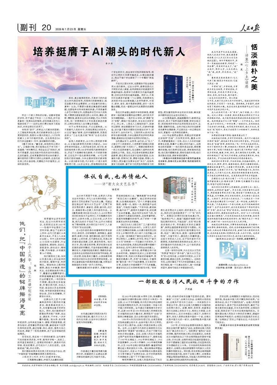 书评 【体认自我,也共情他人】 (人民日报 2026-01-23 09:29 ) 文 | 谢有顺 当文学不再困于书斋,当更多人开始关注市井烟火、平凡人生与劳作现场,一种新的文艺形态便有了生长的土壤。花城出版社推出的“新大众文艺丛书”,汇聚了来自东莞的瑛子、章新宏、易翔、曾为民、沈汉炎、温雄珍等6位素人写作者的作品。从《擦亮高楼》到《赶石头的人》,从《东莞时间》到《有些光不会消失》,不乏稚嫩的写作者们,以抹布为笔,以石头为纸,以岁月为笺,把凡俗的日子写成了诗,让汗水与眼泪有了精神筋骨,成为我们这个时代“人人皆可写作”的生动注脚。 这6位作者的身份有着鲜明的劳动者印记:保洁员、石材销售员、烧烤摊主、基层教师、体育工作者、渔村漂泊者,他们不是传统意义上的作家,也不虚构生活,而是以亲历者的姿态观察、记录、感受和思考。他们的文字,很少悬空的抒情,更多的是对生活肌理的剖析和雕刻,不追求修辞的精致、叙事的宏大,而重视经验的真切、情感的赤诚。这些来自生活现场的活泼的细节和体验,再一次证明,经验是有力量的,从身体感知得来的知识有时比空泛的思想更有深度。这种从直接经验中获得的粗粝力量,对那些日渐板结的文学是一次不小的冲击。 《擦亮高楼》的作者瑛子,写繁华城市那些被忽略的人生,“擦亮高楼”时也希望“把自己的人生擦亮”。她记录劳动的场景,比如清洗地库时,“四个人拼着往前推拖把,谁慢一点,谁快一点,拖把就不会成直线”,可她因为偏胖,“干到半场,感觉缺氧,跑不动了”,画面并无美感可言,却充满了生命的重量。她还写灰尘如何飞扬,写工装被汗水浸湿后的颜色,这些带着呼吸、体温和细微颤抖的细节,成了折射一个群体真实生存状态的棱镜。 《赶石头的人》是石材厂工人曾为民在石屑中淬炼出的生命诗行。从背石人的汗水到工伤事故的隐痛,从夫妻分居的思念到对乡土乡情的怀想,诗人将个人经历融入诗中,让每一首诗都成了真实生活的切片。这种以物写人、以事照心的书写,呼应了“新大众文艺”的特质——不回避日子的艰辛,不夸大生存的苦难,而是在具体场景中理解个体的命运,在平凡劳作中寻找生命的意义。 丛书里每一部作品,都带着这种个体生命的印痕。温雄珍《在炭火上安居》写烧烤摊的日常,写炭火炙烤食材的嗞嗞声、菜摊前的鼎沸人声,并把“在马路边,守着菜摊”看作是一件了不起的事情,日日亲历的日常,在她的文字里被赋予了不凡的重量。章新宏在《从江右到岭南》里写乡愁,“我将根扎进东莞这片土地时,刚好是秋天。从此,我的记忆密码里便多了一个‘秋’的代号”。易翔在《东莞时间》里写纯真少年,“她觉得力气小,每道门槛都好难跨/只好陷在美好的时光,不能自拔”,也写“把头埋进试卷的少年,寻找通往未来的正确答案”,映照出基层教育者的坚守与期盼。沈汉炎在《有些光不会消失》里写漂泊与扎根,他说“一辆三轮车,就是一座移动的博物馆”,为留守的人、漂泊的人收藏希望。这些文字的动人之处,在于写作者并不冷眼旁观,而是积极投身热闹的生活,把个人悲欢融进时代的洪流之中,让个体的讲述获得更多人的共鸣。 这是一场写作变革,大众正在从文艺的“欣赏者”转变为“参与者”。“新大众文艺丛书”的6位写作者,以肉身叩问现实,以文字感受冷暖,既体认自我,也共情他人。这样的书写,让我们看见了平凡中的坚韧意志,也让我们相信,每一个认真生活的人,每一份执着的坚守,都有可能在文学里绽放光芒。 * “新大众文艺丛书”, 瑛子等 著, 花城出版社2025年10月出版。 (《人民日报》 2026年01月23日 第 20 版:副刊)体认自我,也共情他人 光明悦读 分享链接:体认自我,也共情他人