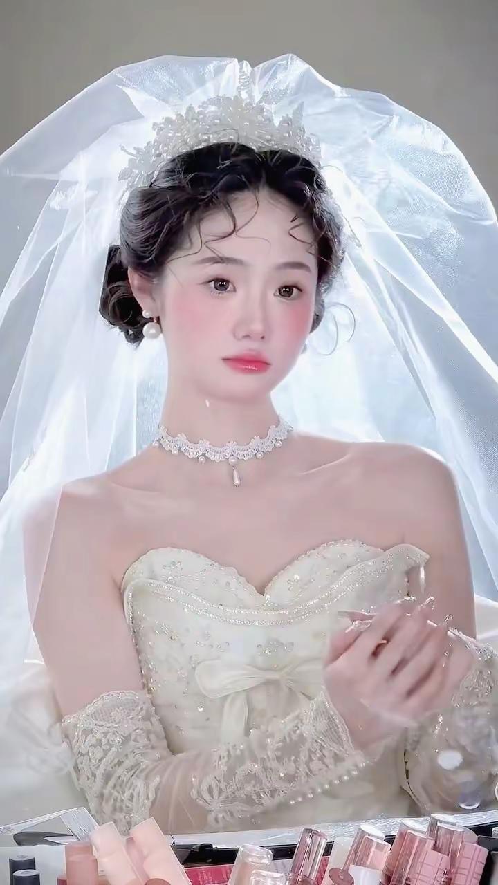 谁还没当一次在“逃公主”,今天的妆造真的太爱了,清透的粉调底妆配上精致的珍珠配饰,氛围感直接拉满~”,韩系新娘妆 画报风写真 妆容分享这几个就好T小小美妆 @重庆柠柠化妆 @重庆化妆师萍萍