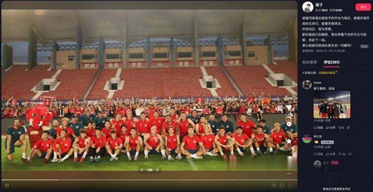直播吧1月24日讯2025赛季结束后,刘斌与河南队的合约到期,随即正式离队。刘斌2024赛季加盟河南队,为球队出场25次,取得1个进球和3次助攻。通过个人短视频账号,刘斌发文向河南队告别,钟义浩等队友也为他送上鼓励。