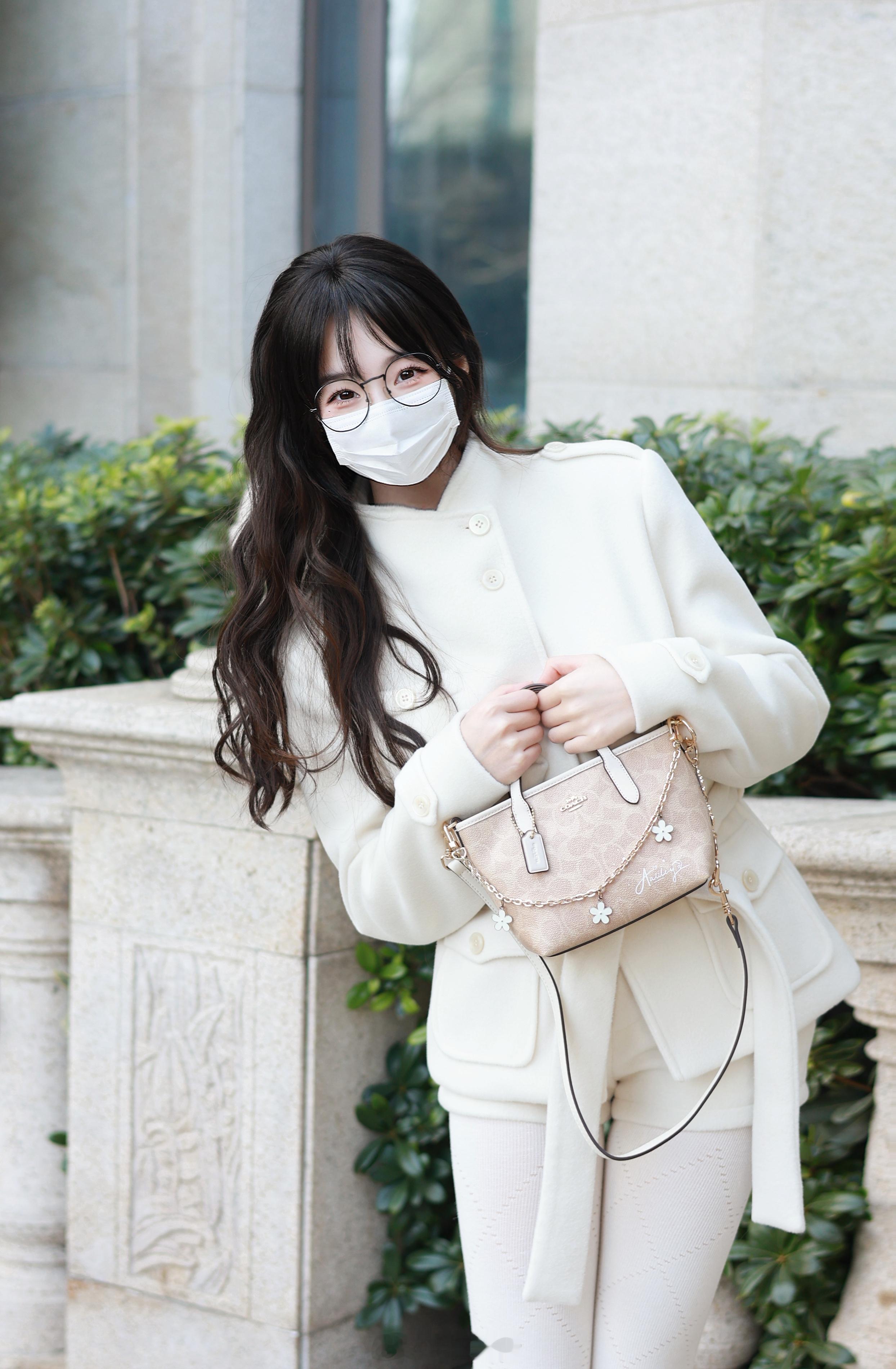 乌发如绸垂肩漾柔光,眉眼藏星眸含闪,睫毛卷翘似蝶翼。鼻梁挺直唇若樱,淡粉润泽微启