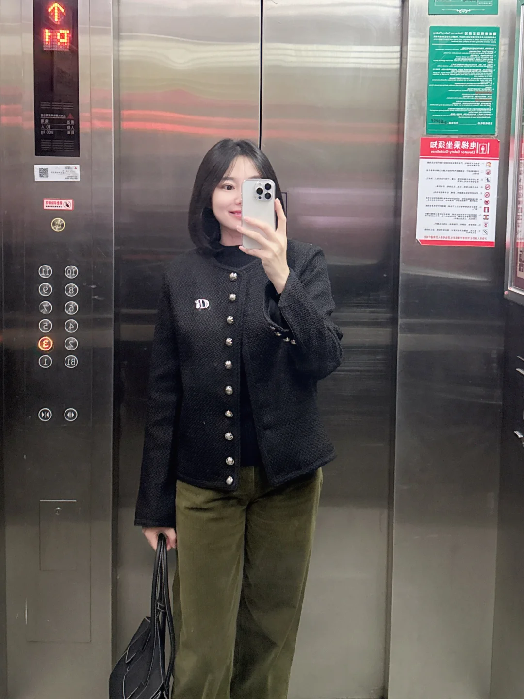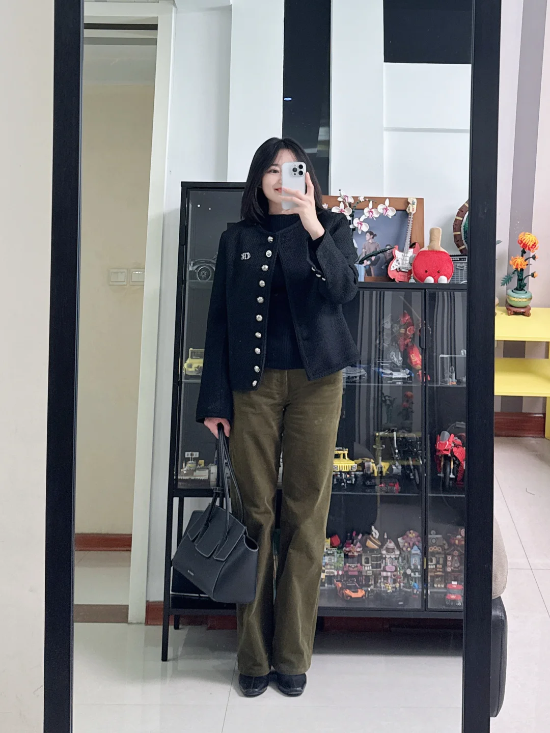 今日穿搭:小香风外套真的很适合秋冬正式场合通勤,外面套个羽绒服穿脱方便,