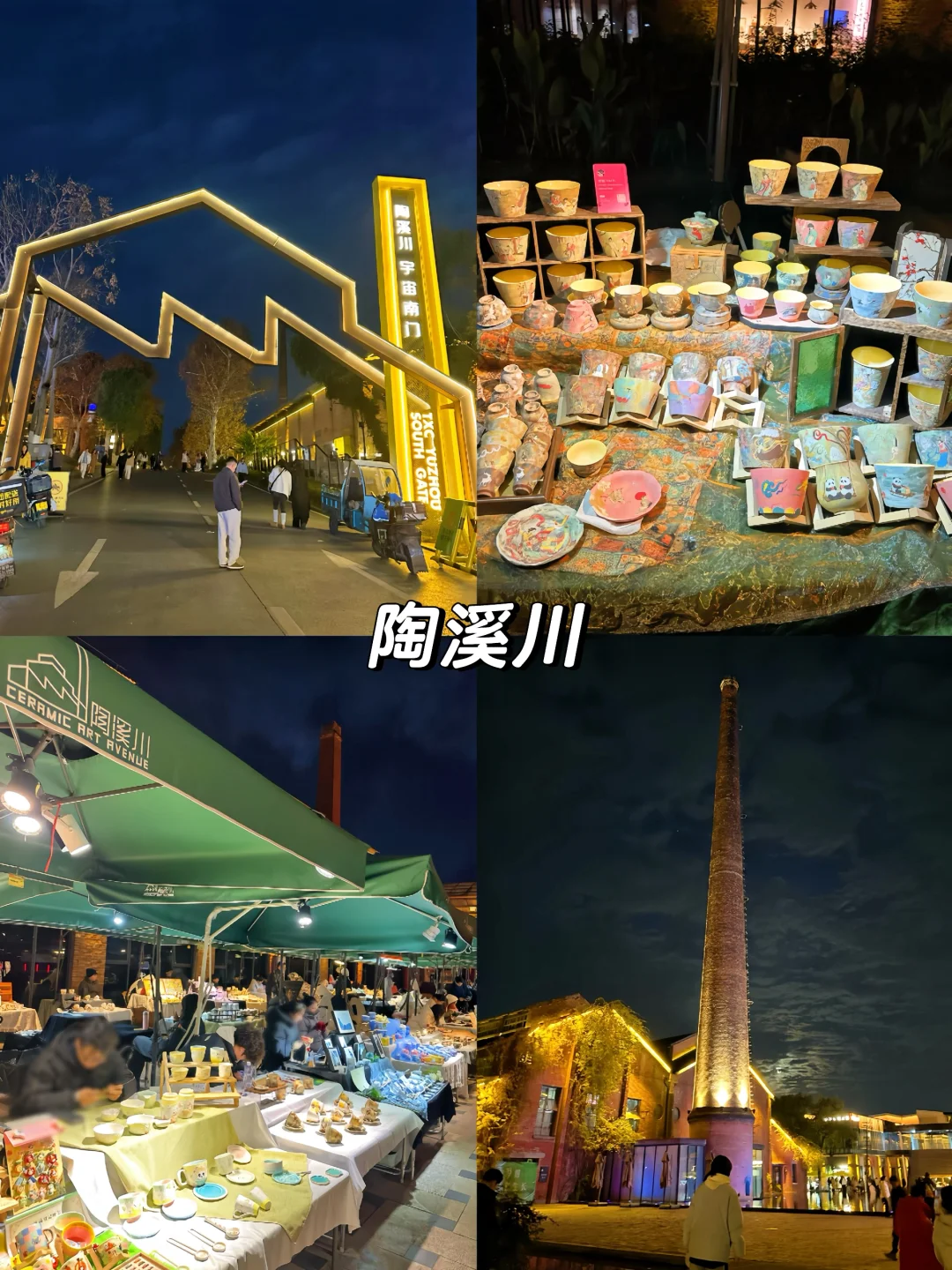 📍陶溪川:红砖厂房、高耸的烟囱,夜晚氛围感拉满!周五 - 周日16:00 - 22:00有创意夜市集。这里的摊主大多是年轻艺术家和学生,原创手作为主,品质很不错,但价格也略贵。