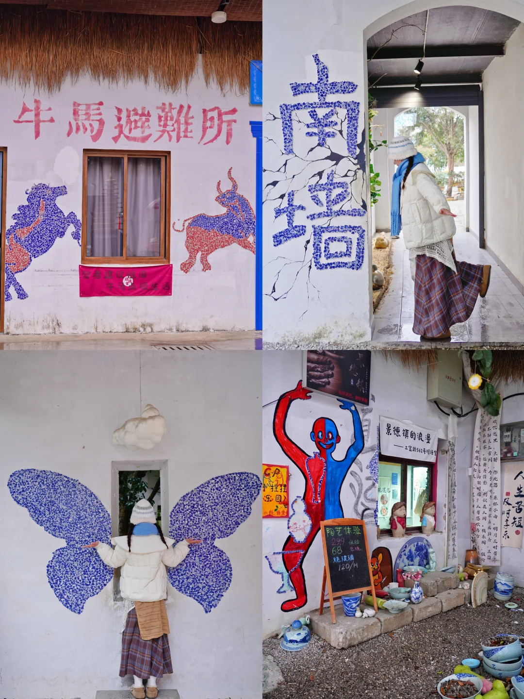 打车到“9494美学空间”,村口可以租电瓶车🛵,30r/天。沿路打卡无语咖啡、景德镇南墙、受气瓶、躺平瓶、熊猫茶杯、三宝美术馆等。