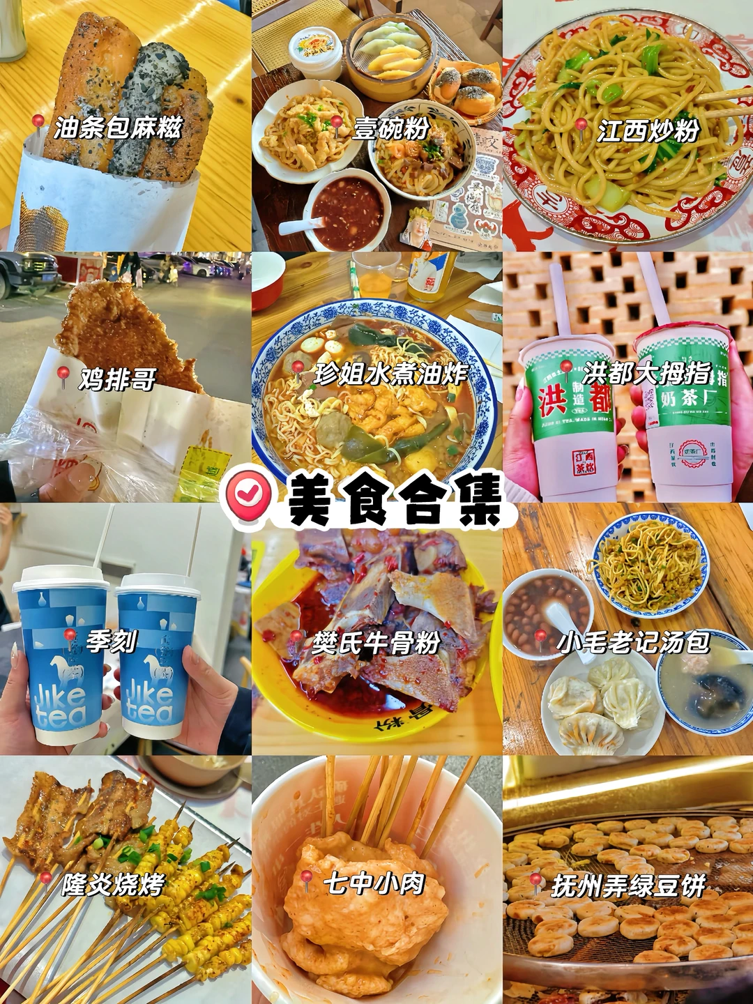 📍抚州弄:打卡七中小肉、谭婆饺子耙、壹碗粉、油条包麻糍…等各种本地小吃。