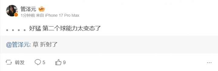 管泽元看U23国足开局0-2落后:好猛 第二个球能力太变态了