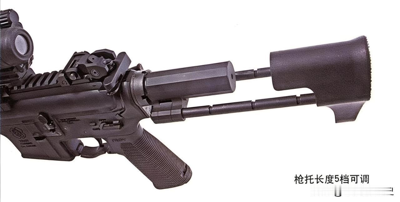 美国特洛伊工业公司ALpha卡宾枪 美国特洛伊工业的Alpha卡宾枪,那可是轻便携带的好家伙! 它用的是气吹式导气设计,枪口的消焰器带锯齿,还能当攻击头用。上下机匣都是锻造的,表面处理得很耐用,是硬质阳极氧化工艺。 顶部的导轨是军用标准的,上面的照门能折起来,想装瞄准镜也方便。 下机匣装弹匣的地方有导引边,换弹不费劲,扳机护圈做得挺大,戴手套也能操作。 护手是圆筒形的,周围全是小圆孔,散热特别快,而且护手导轨和机匣导轨是连在一起的,瞄准的时候更准,前面的准星也能折起来。枪托是伸缩式的,叫M7A1“战斧”,样子小巧,有两根平行支杆,拉一下尾部就能调5个长度。 缩起来才711毫米长,伸开787毫米,枪管368毫米,用的是5.56北约弹,弹匣能装30发,空枪才2.9公斤,不管是户外使用还是收藏,都特别合适。