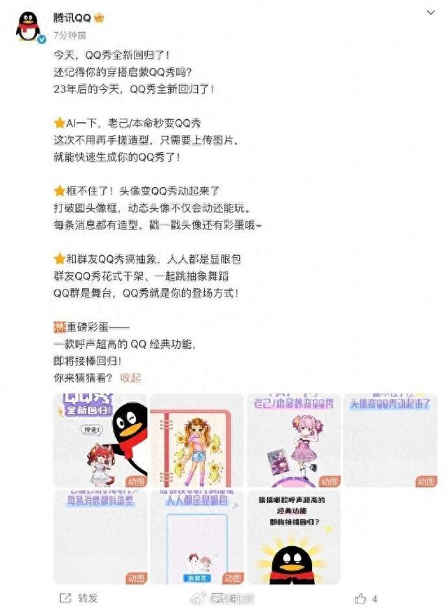 作为QQ的经典功能,23年前,QQ秀一经推出便受到用户追捧,也代表着中国互联网从单纯的通讯工具向个性化社交平台的转变。