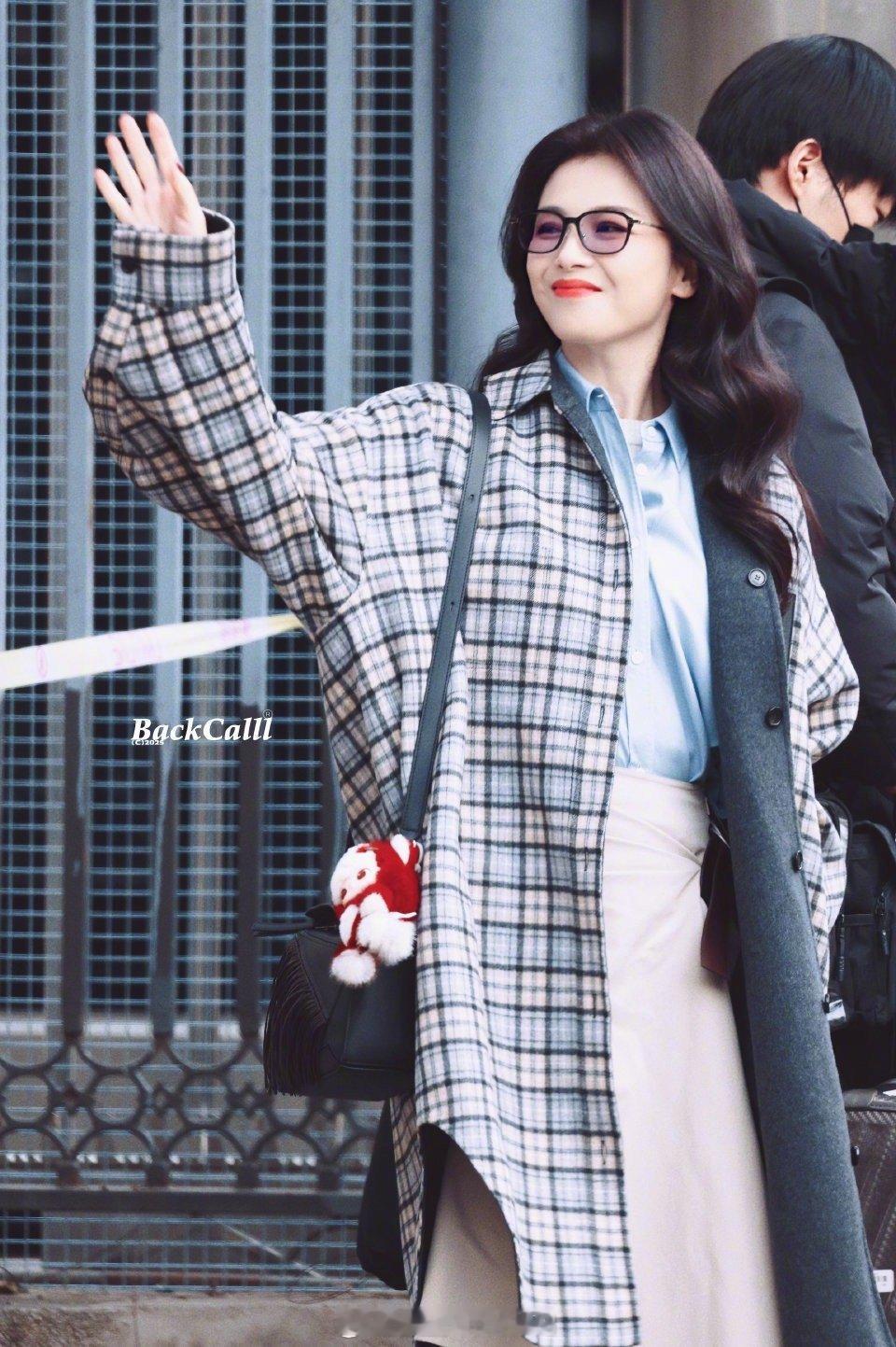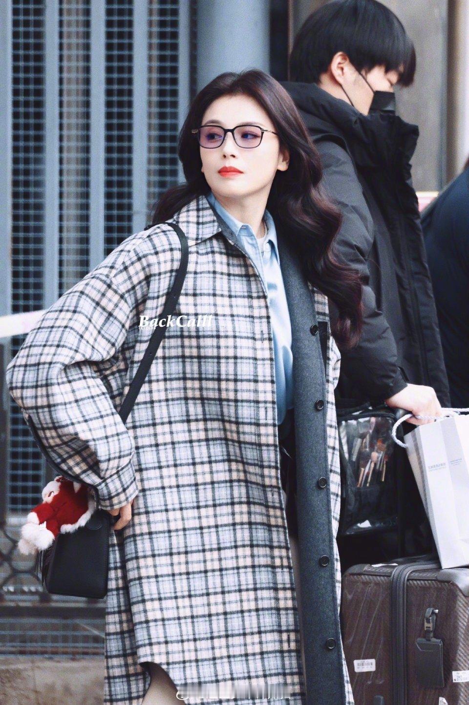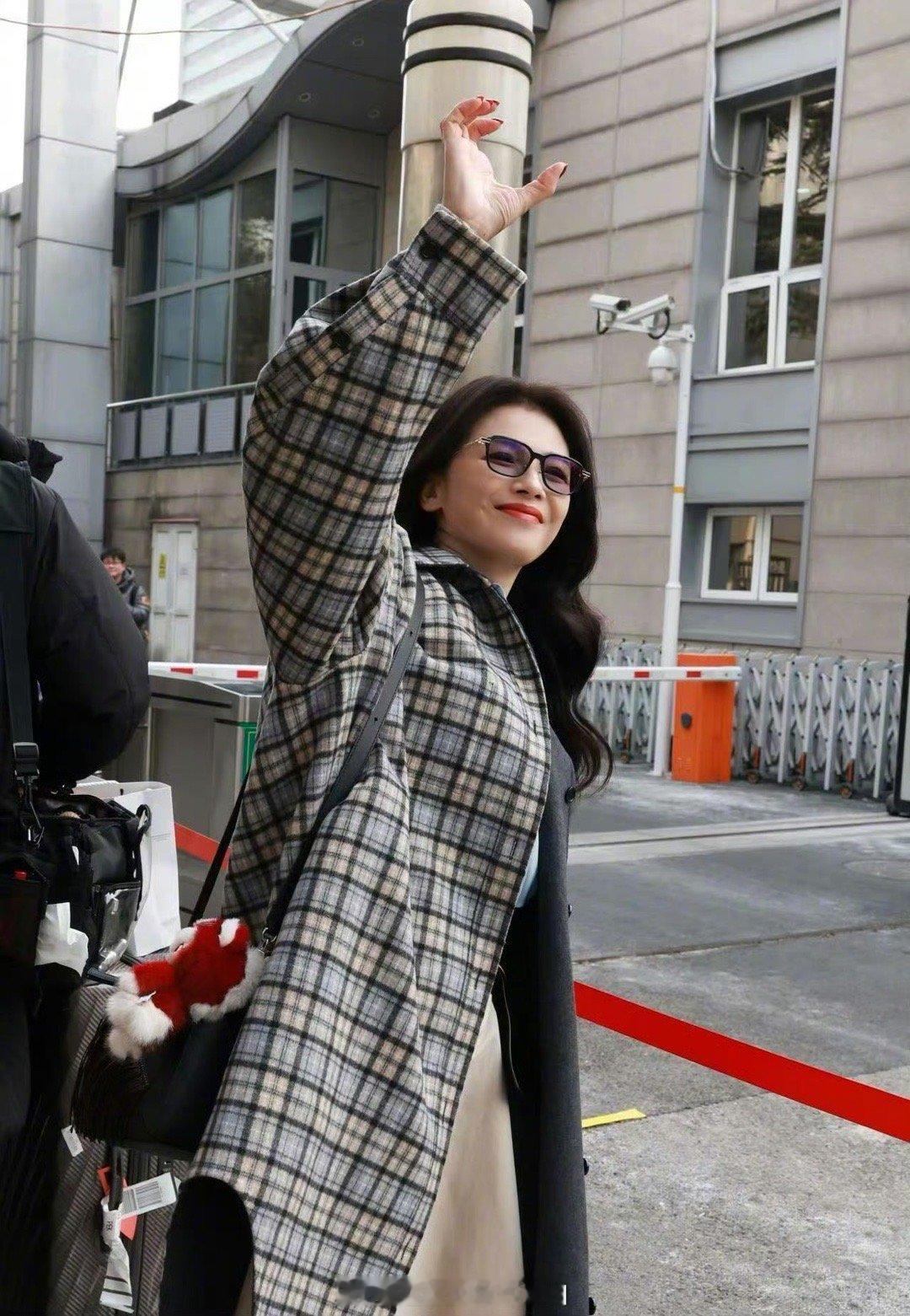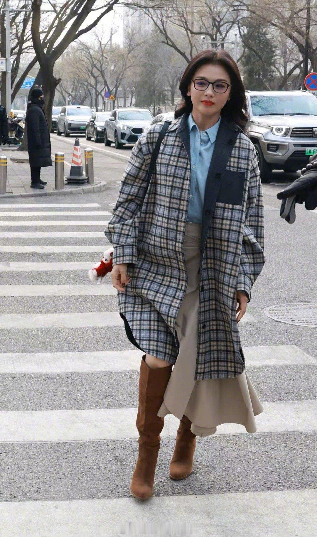 刘涛现身春晚彩排现场 刘涛现身春晚第二次彩排,格纹大衣眼镜造型好温柔!一路与粉丝