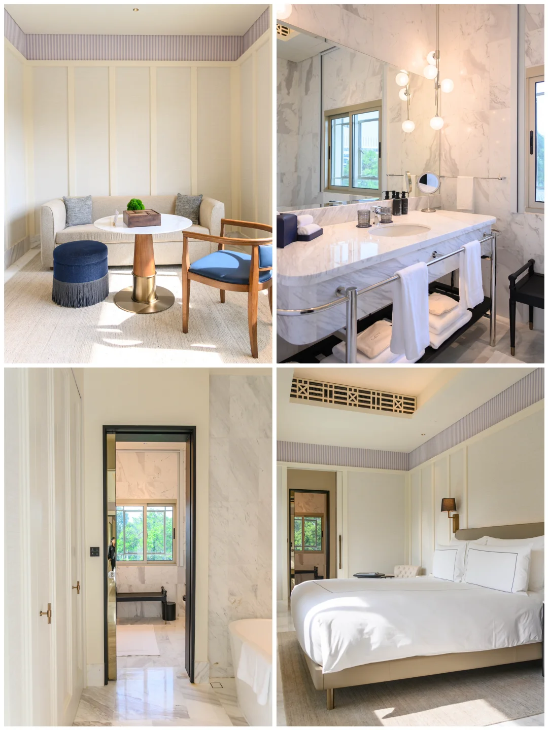 酒店就在现在网红树洞所在的福康宁公园内,一座白色百年建筑就是。酒店风格时尚简约,就是那种看了就很舒服的感觉。我们住的泳池景观精致套房全酒店只此一间,有65平米。在房间任何位置都能看到漂亮的泳池,整排落地窗的好处就是每天可以看到好看的光影,其它房型可以看到公园景观和城景。在房间内还能自己做鸡尾酒,喜欢喝茶的朋友还能喝到6种新加坡当地茶。