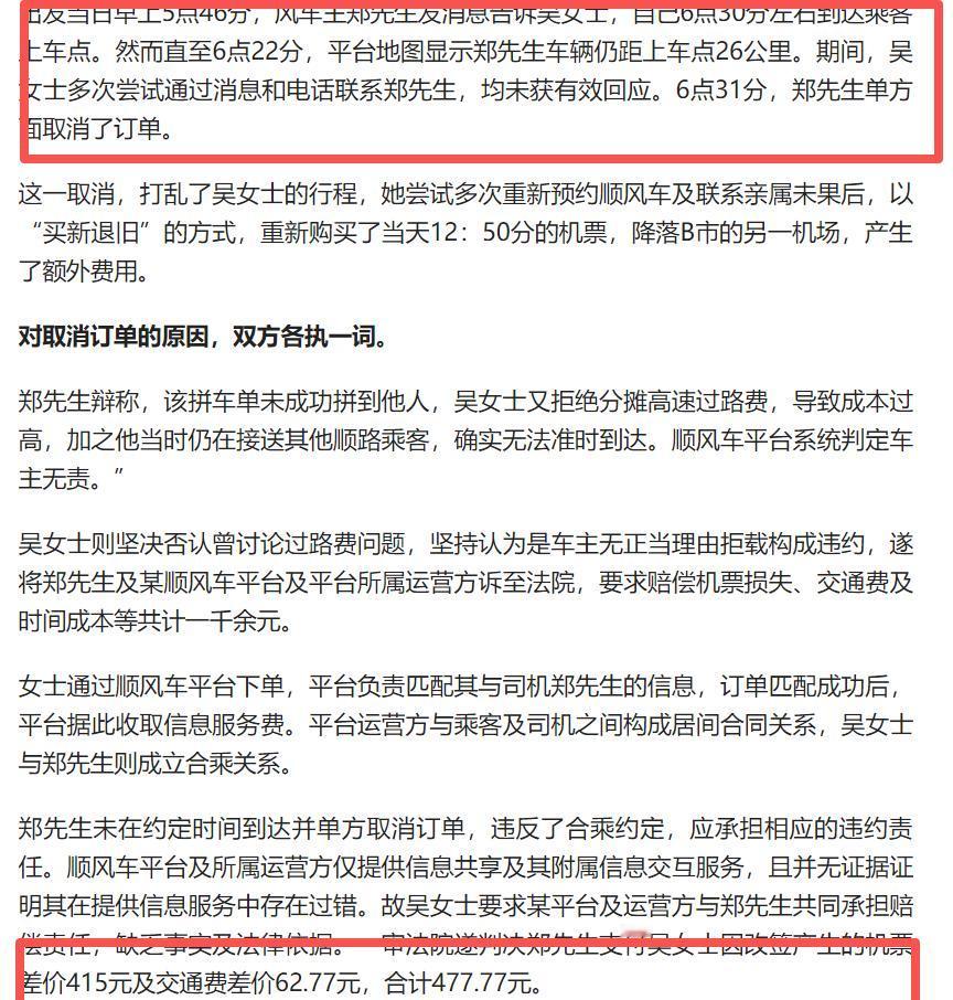 大家看看上海一中院的这个审判合理吗?一司机接了顺风单,乘客不同意路费,司机以未拼上人且乘客不同意出路费为由,取消了订单。乘客重新买机票多花了400多,打车多花了60多,法院判司机赔偿。如果上海一中院的该判决成立,则凡是乘客叫了车,但后来又取消了的,是不是要赔偿司机的油费、损失的订单费?无论司机、乘客,难道不都是有权利随时取消订单吗?