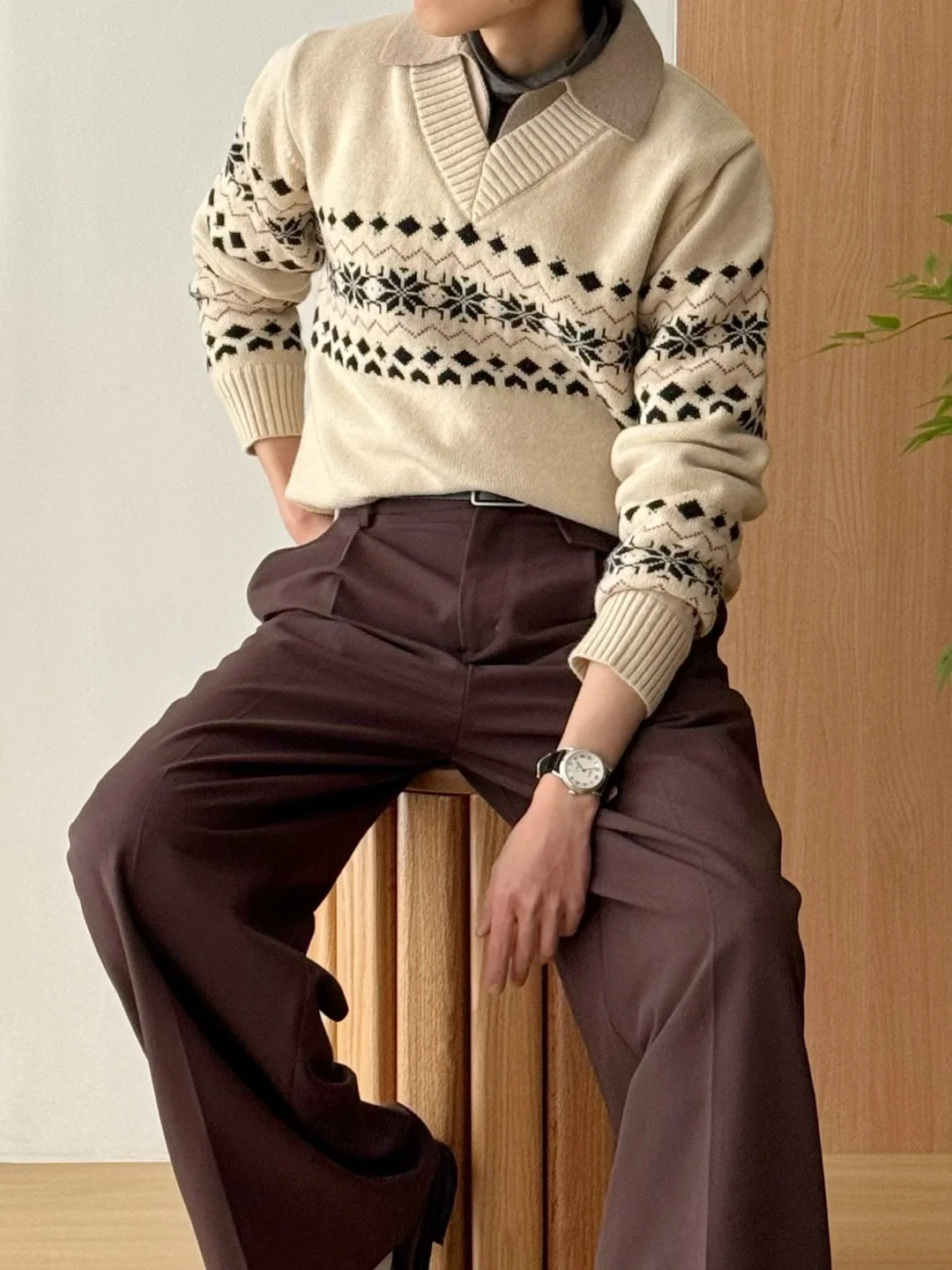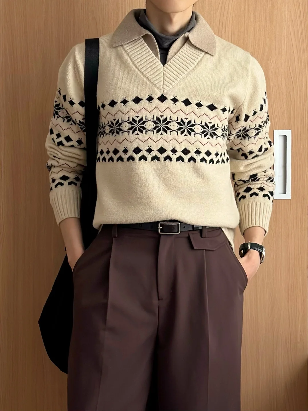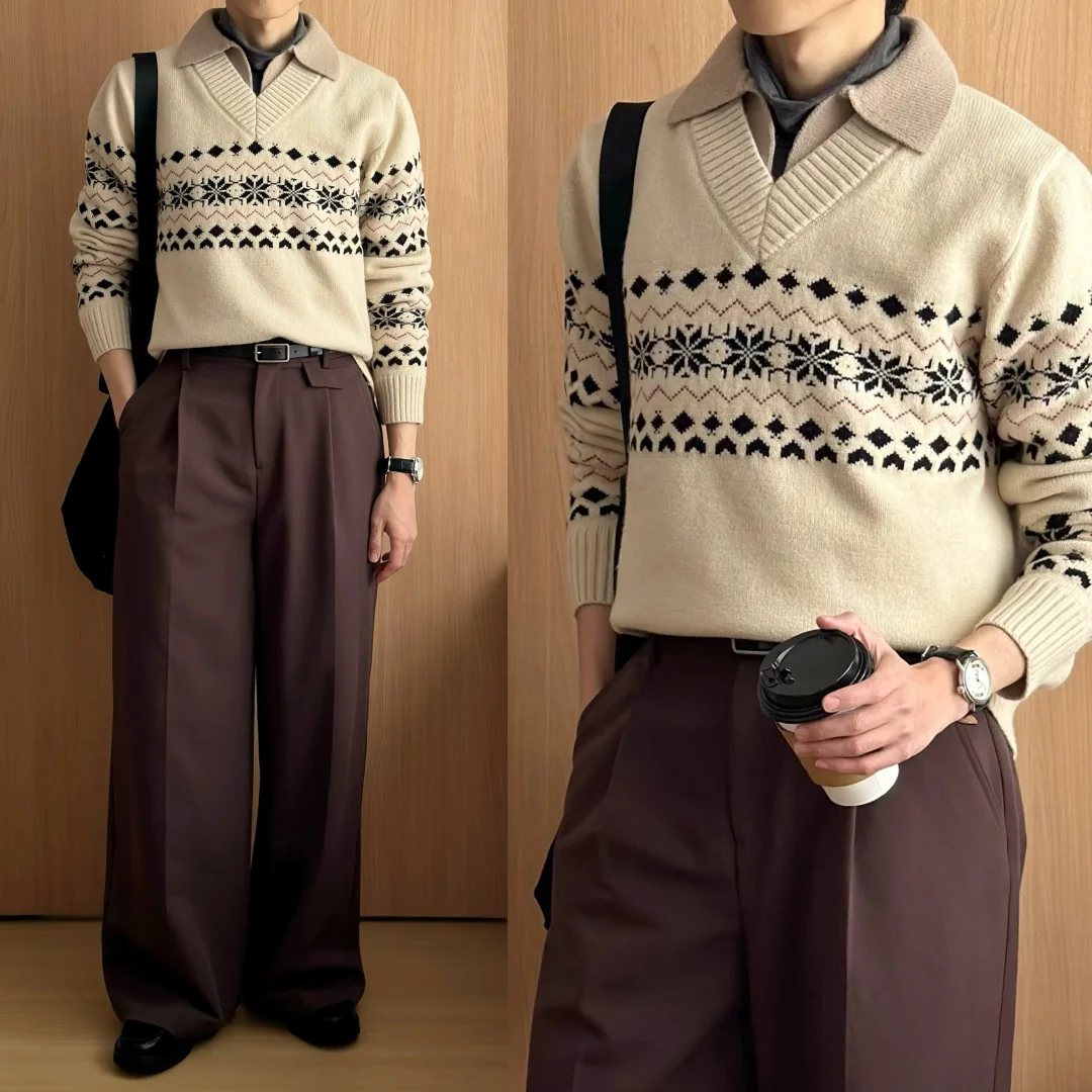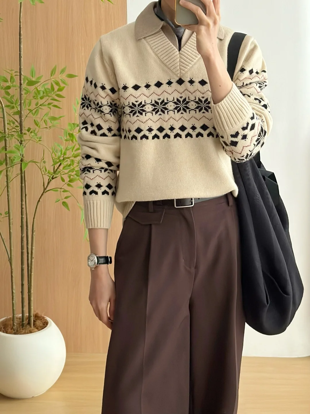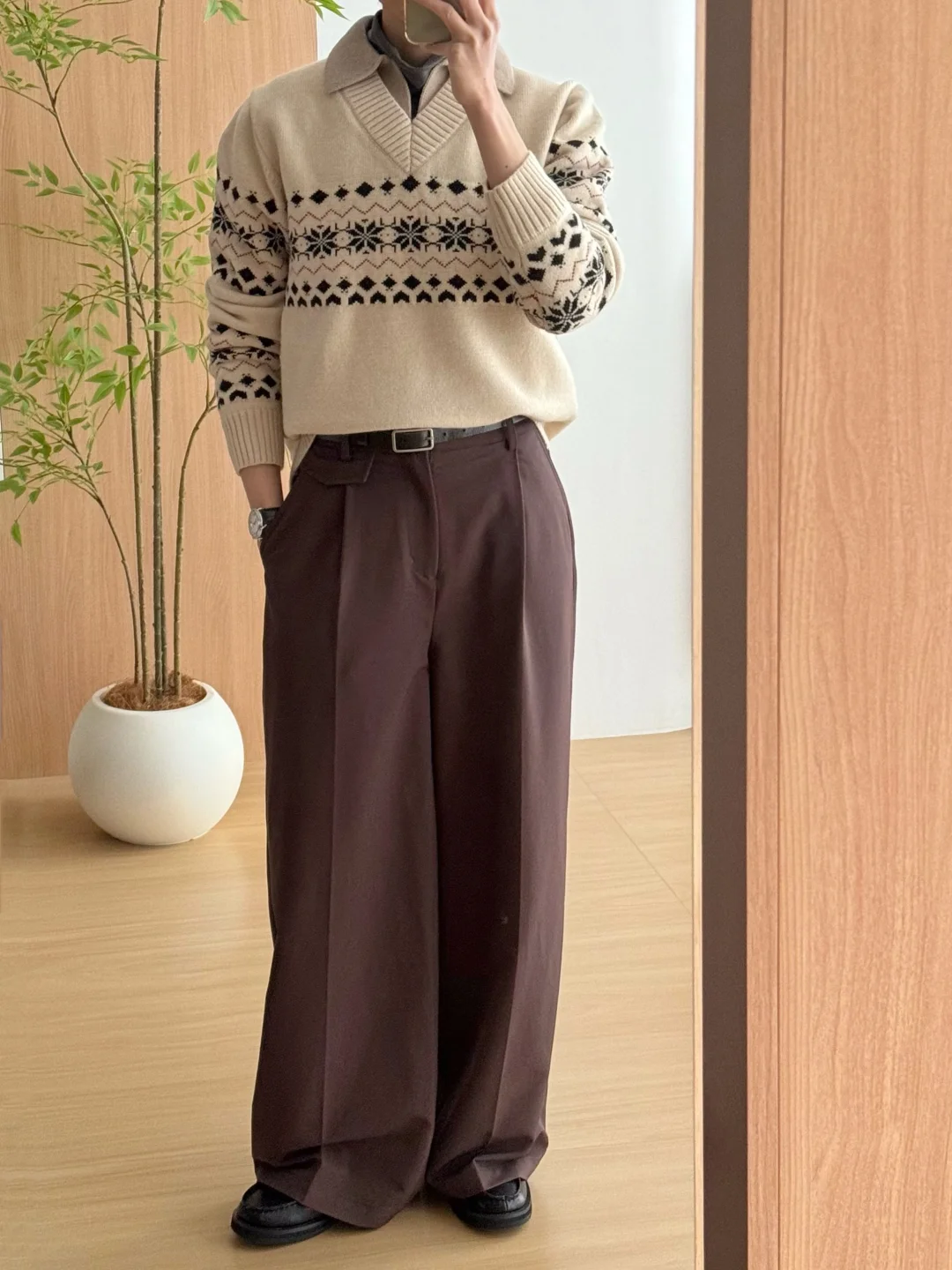 ·自带层次[doge]可以省去些许搭配纠结~ ·奶咖色系☕️温柔复古也暖暖的🔥 ·搭配阔腿裤,慵懒舒适🍃 -