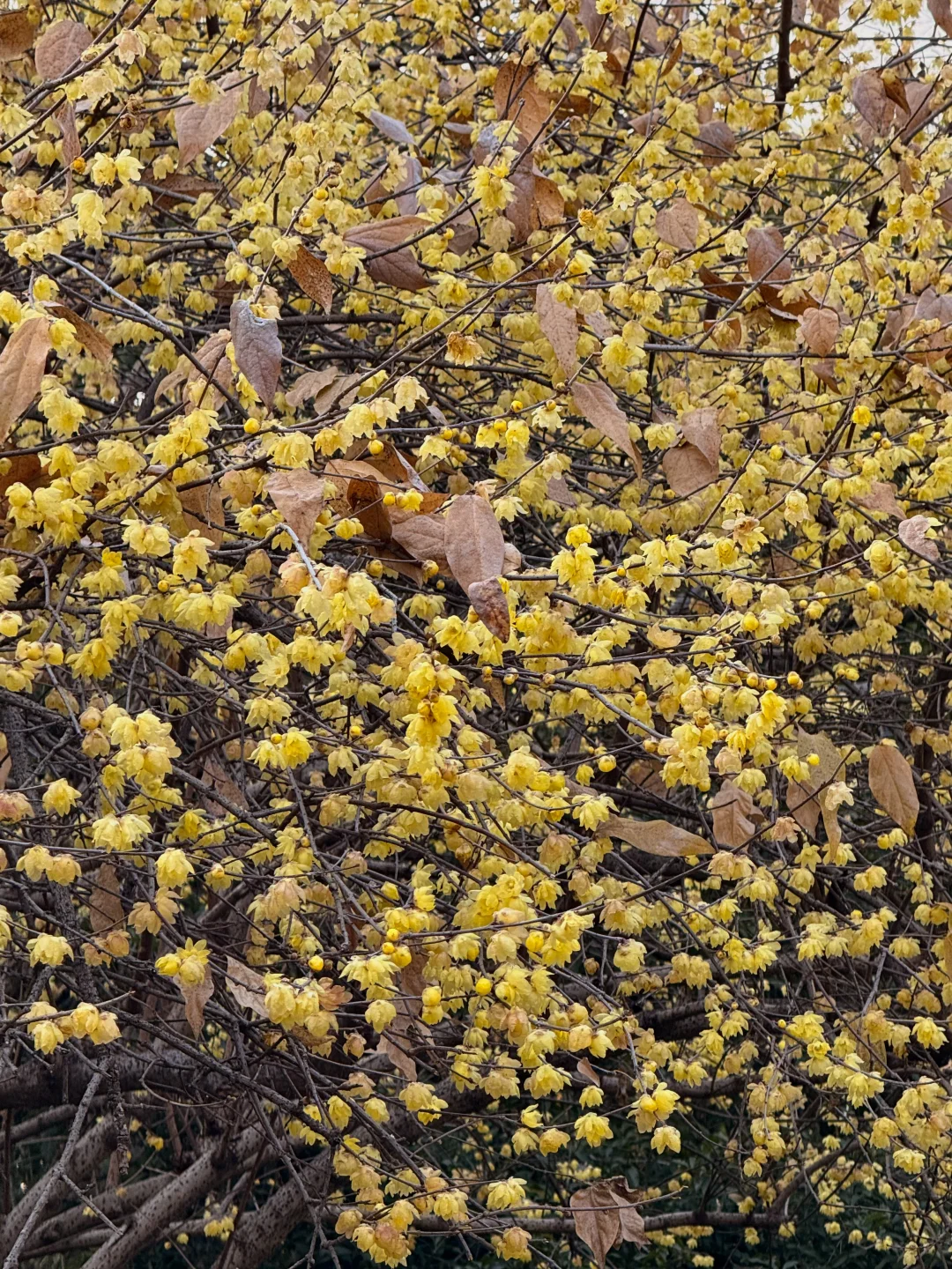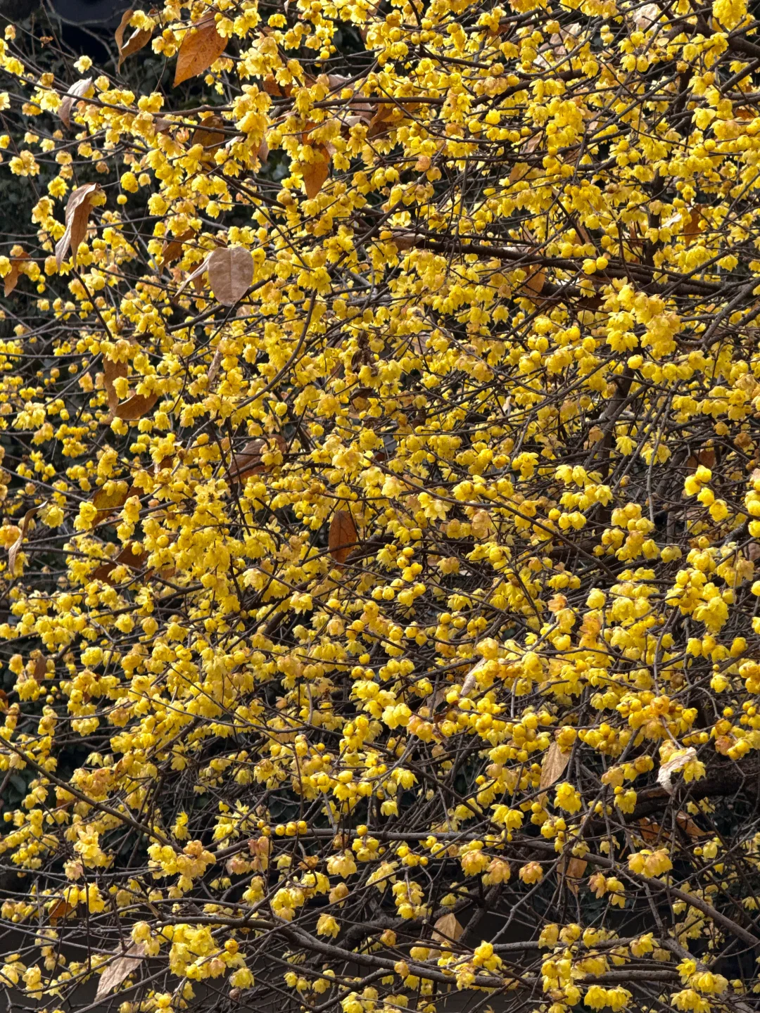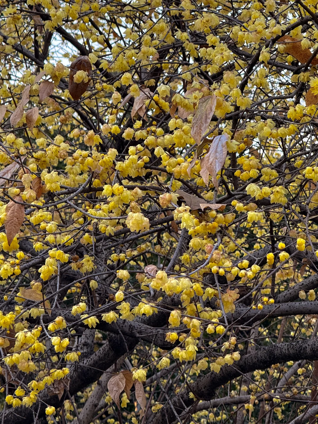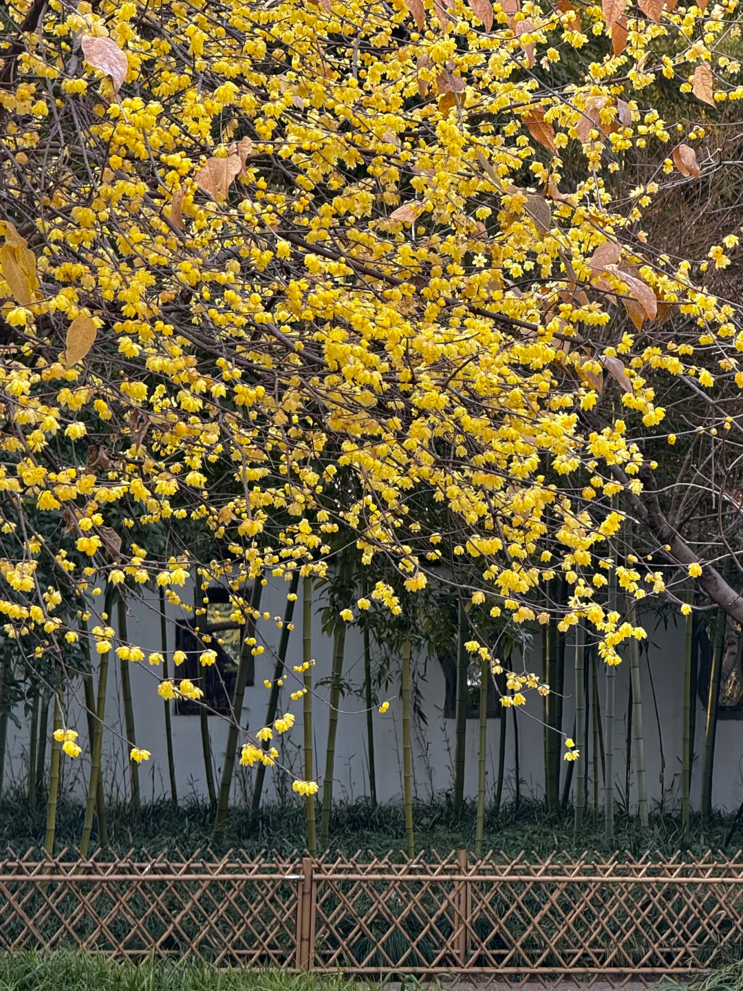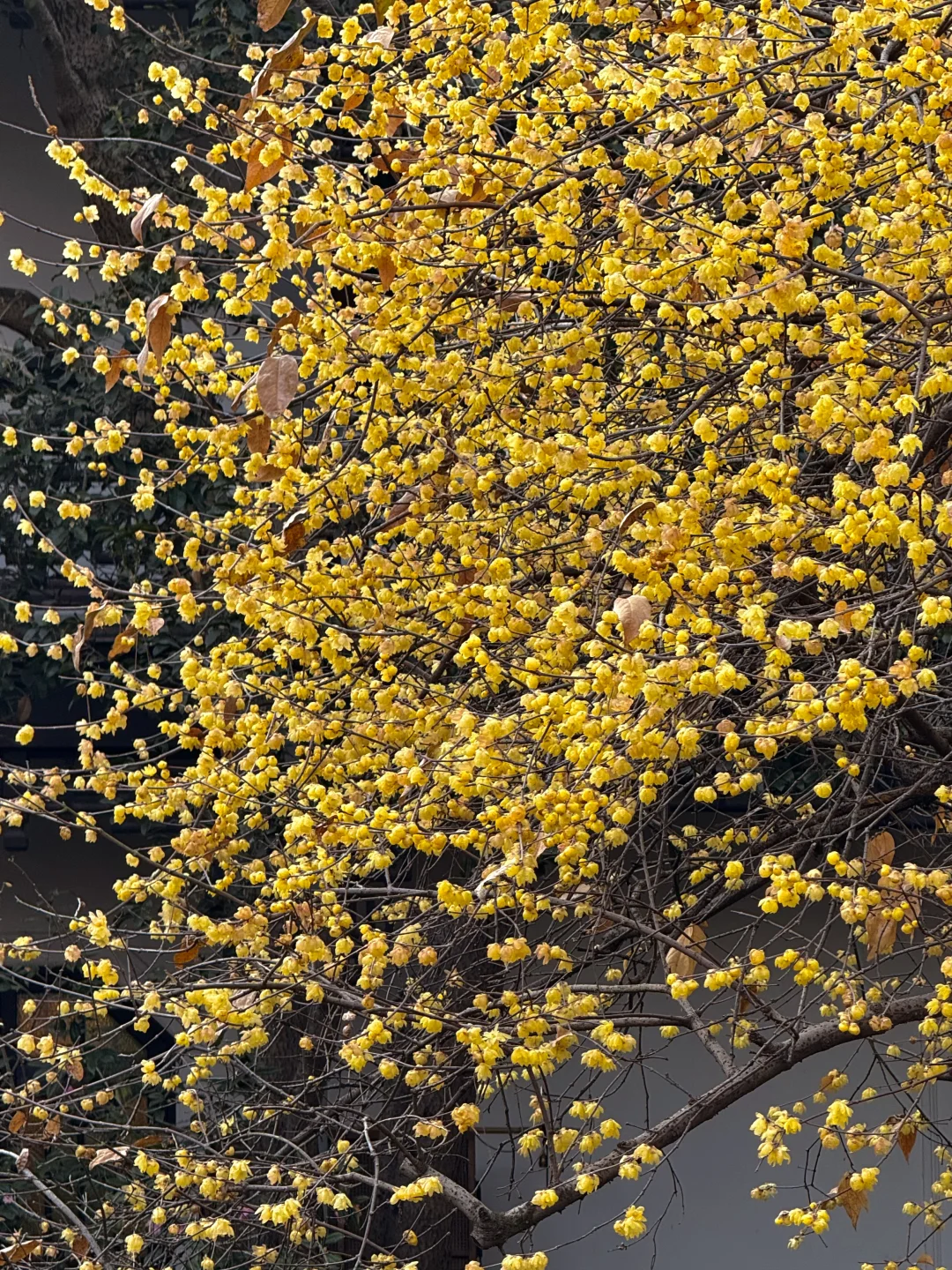 在花港观鱼偶遇一株盛放的腊梅 枝干枯槁,却在枝头炸开了一树金黄🌼 路人都在惊叹它的“夸张”与“盛大”。 在阵阵扑鼻的幽香里,我不禁在想:这看似干枯的躯干里,究竟藏着多大的劲儿?它是不是也在无数个无人问津的寒夜里,默默咽下了风霜,才将所有的沉默与隐忍,凝结成了此刻的璀璨。 原来,“身如枯木,心有繁花”是真的。 所谓“枯木逢春”,也就是在漫长的寂静里,从未放弃过让自己成为春天。