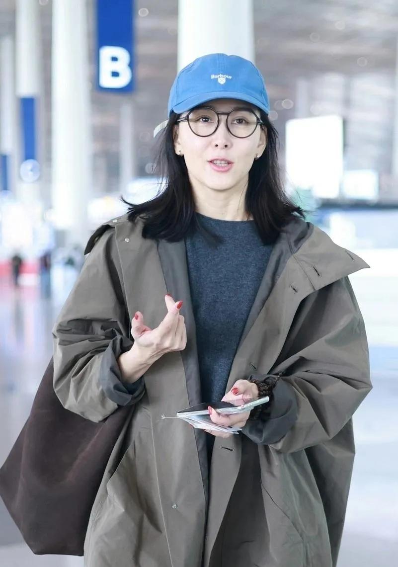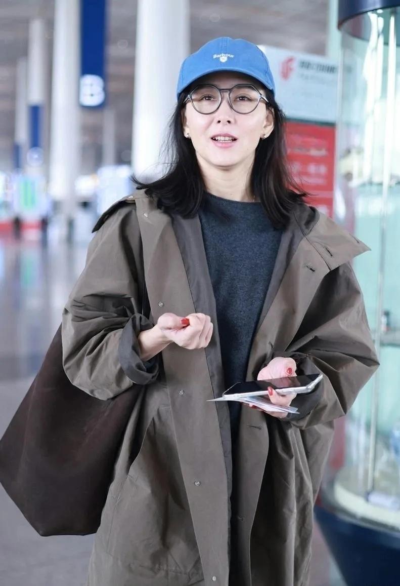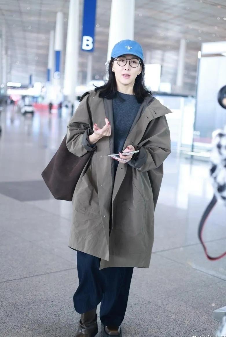 胡静这机场穿搭,减龄又舒服✨ 卡其色风衣+灰色毛衣+棒球帽,松弛感直接拉满!