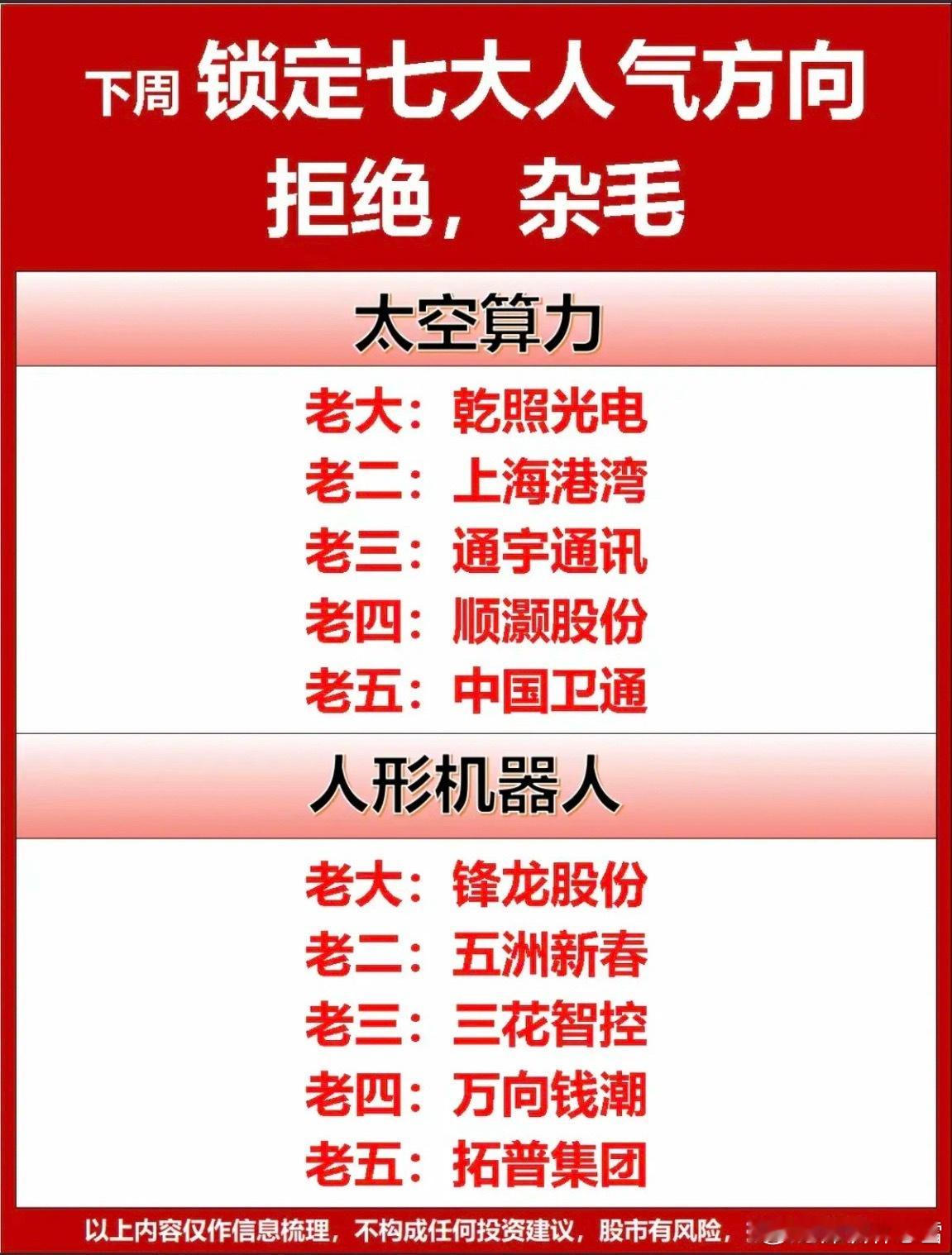 1.26周一 下周市场热点+投资方向1.商业航天2.太空光伏3.太空算力4.人形机器人5.智能电网6.人工智能7.存储芯片