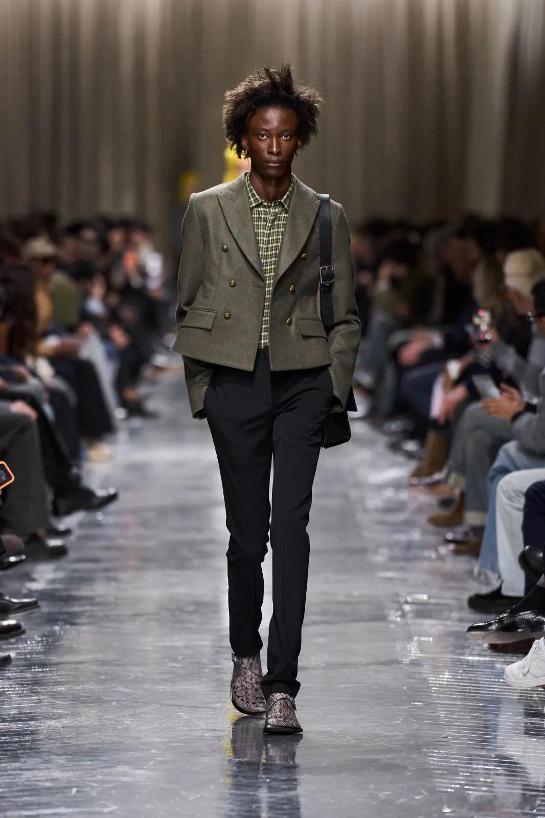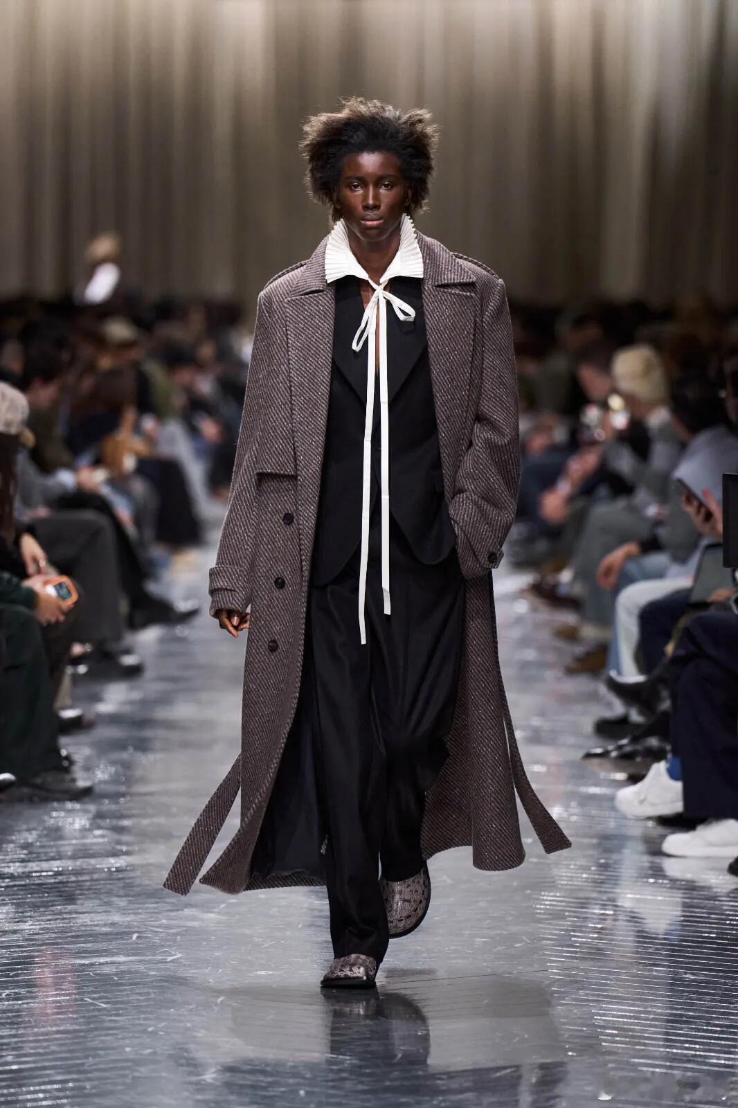 巴黎时装周启幕,Jonathan Anderson 携入主后首个男装系列——Dior Men Fall/Winter 2026 重磅登场,以“拼接式叙事”开启迪奥男装新纪元。本季以围绕“新贵族”为核心,将 Paul Poiret 的先锋结构、Dior 经典男装廓形与当代音乐人 Mk.gee 的现代气质并置碰撞,拒绝复古回溯,只做元素重编。秀场之上,比例重构的 Bar Jacket 打破经典边界,丹宁短裤组合、水手扣细节注入街头活力,夸张外套与针织单品的叠加,让历史符号在当代穿着中自由摆动。从廓形到细节,从文化到气质,Anderson 用一场跨越时空的时装实验,完成在 Dior 内部的个人叙事首章——新贵族,不止于优雅,更在于重构与新生。男装周 |巴黎男装周 |DIOR大秀