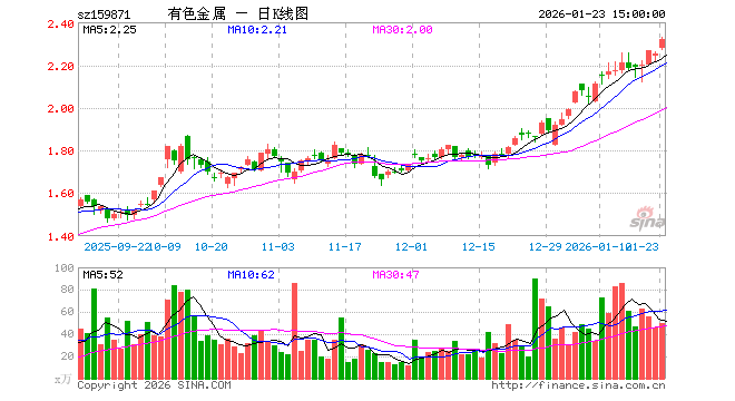 1月23日,有色金属ETF(159871)涨2.97%,成交额1.16亿元。当日份额增加300.00万份,最新份额为4.01亿份,近20个交易日份额增加8950.00万份。最新资产净值计算值为9.29亿元。