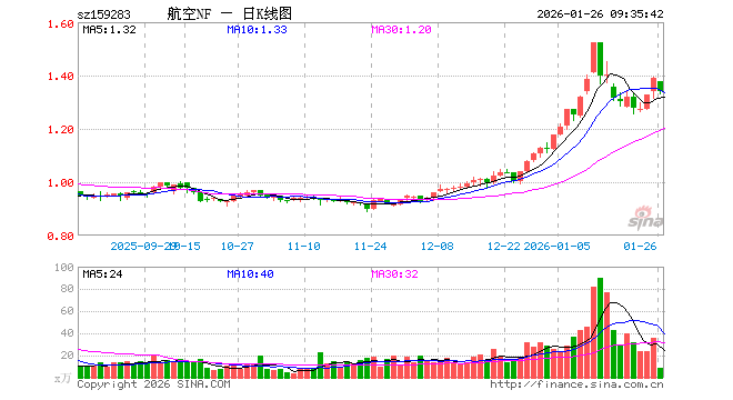 1月26日,通用航空ETF南方(159283)开盘跌0.72%,报1.378元。通用航空ETF南方(159283)重仓股方面,航天电子开盘跌4.64%,海格通信跌0.77%,中国卫通跌5.84%,中科星图跌5.37%,华测导航跌0.98%,北斗星通跌1.39%,航天彩虹涨0.16%,华力创通涨0.52%,西部超导涨0.48%,洪都航空跌0.87%。