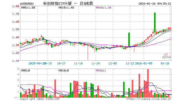 科创综指ETF兴银(589580)业绩比较基准为上证科创板综合价格指数收益率,管理人为兴银基金管理有限责任公司,基金经理为林学晨,成立(2025-05-27)以来回报为51.81%,近一个月回报为18.05%。