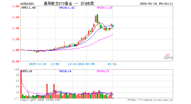 通用航空ETF基金(561660)业绩比较基准为中证通用航空主题指数收益率,管理人为平安基金管理有限公司,基金经理为刘洁倩、马浩然,成立(2025-10-29)以来回报为46.99%,近一个月回报为37.40%。