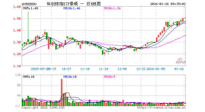 科创综指ETF景顺(589890)业绩比较基准为上证科创板综合价格指数收益率,管理人为景顺长城基金管理有限公司,基金经理为金璜、龚丽丽,成立(2025-02-26)以来回报为50.15%,近一个月回报为18.39%。