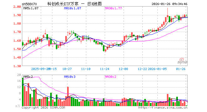 1月26日,科创成长ETF万家(588070)开盘跌0.42%,报1.891元。科创成长ETF万家(588070)重仓股方面,海光信息开盘跌0.18%,寒武纪跌0.75%,拓荆科技跌1.99%,源杰科技跌1.47%,九号公司涨0.00%,国盾量子跌0.45%,仕佳光子涨0.03%,百利天恒跌0.14%,思特威涨3.06%,铂力特涨2.00%。