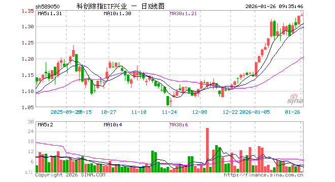科创综指ETF兴业(589050)业绩比较基准为上证科创板综合价格指数收益率,管理人为兴业基金管理有限公司,基金经理为徐成城、张诗悦,成立(2025-07-30)以来回报为33.28%,近一个月回报为18.52%。