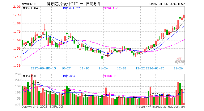 1月26日,科创芯片设计ETF(588780)开盘跌0.21%,报1.858元。科创芯片设计ETF(588780)重仓股方面,海光信息开盘跌0.18%,寒武纪跌0.75%,澜起科技跌1.14%,芯原股份涨4.55%,东芯股份涨5.20%,佰维存储涨1.25%,睿创微纳涨4.61%,晶晨股份涨0.00%,复旦微电跌2.32%,恒玄科技跌1.29%。