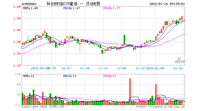 科创综指ETF建信(589880)业绩比较基准为上证科创板综合指数收益率,管理人为建信基金管理有限责任公司,基金经理为葛鲁禹,成立(2025-02-20)以来回报为51.16%,近一个月回报为18.46%。
