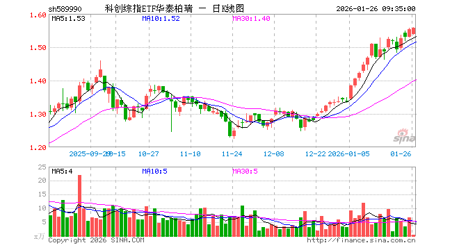科创综指ETF华泰柏瑞(589990)业绩比较基准为上证科创板综合指数收益率,管理人为华泰柏瑞基金管理有限公司,基金经理为谭弘翔,成立(2025-02-26)以来回报为55.82%,近一个月回报为19.11%。