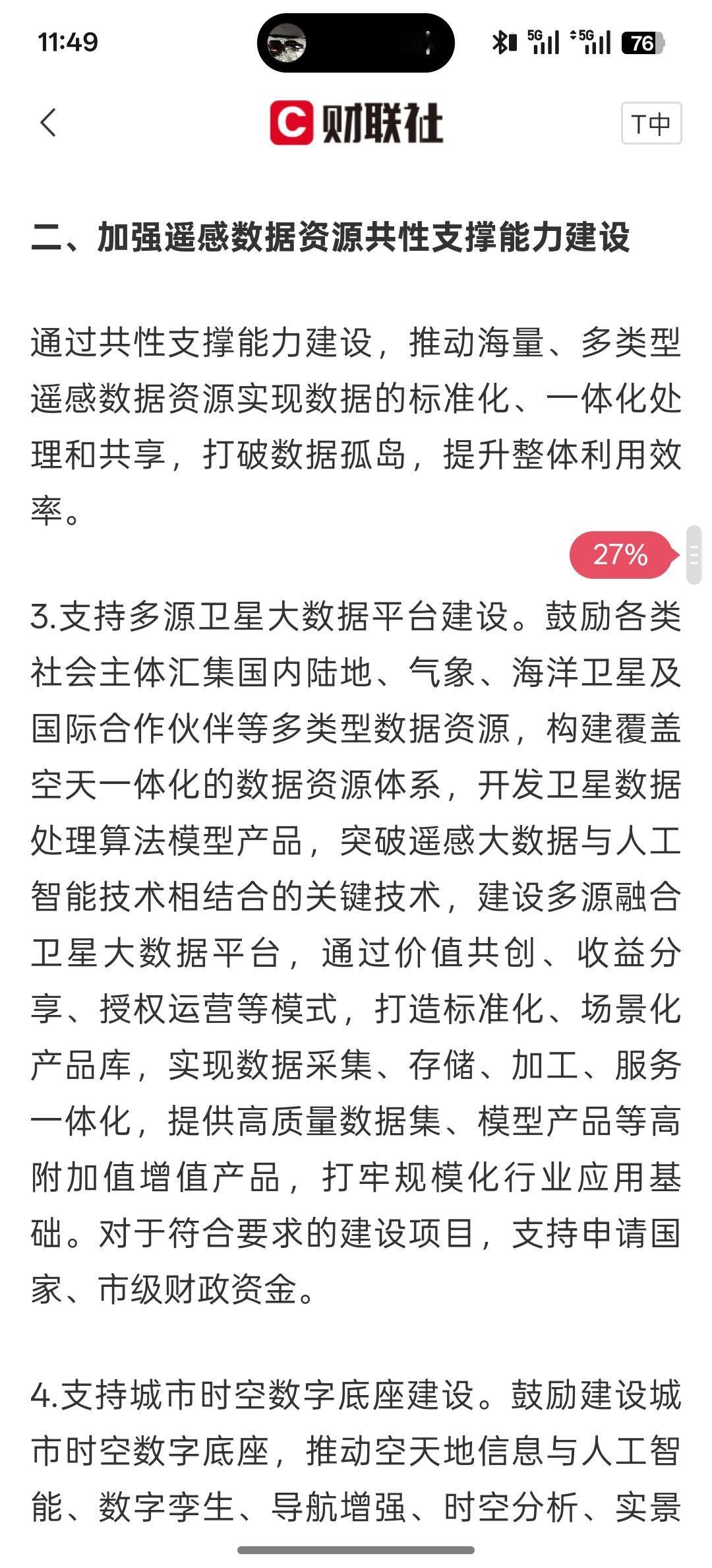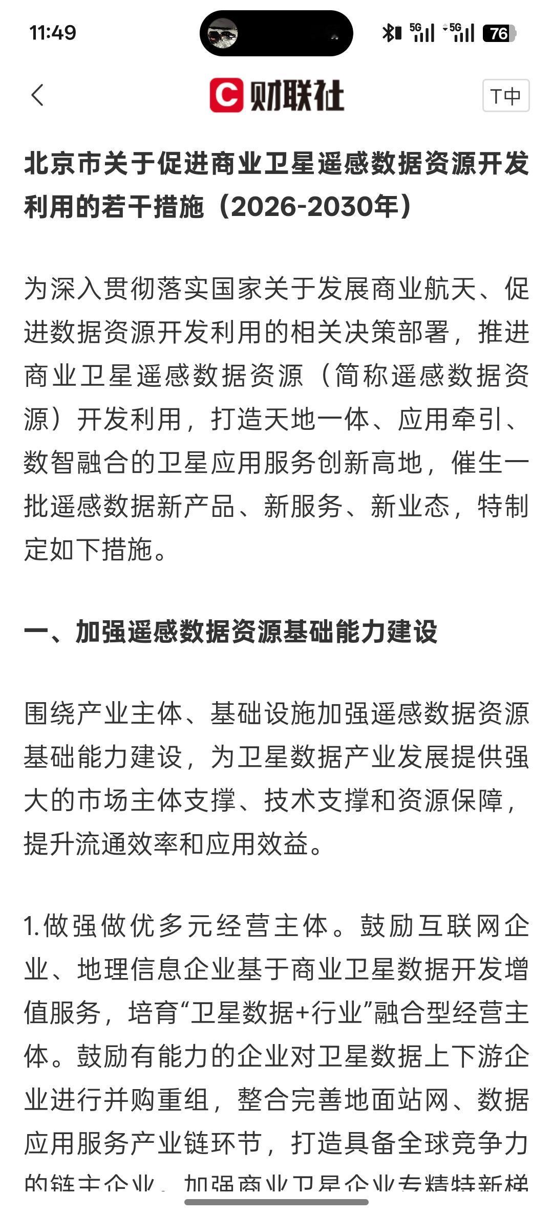 利好消息,北京:加强太空云计算、人工智能、大数据等新一代信息技术在卫星星座中的应用!那么,太空云计算会带来更多的算力发展!人工智能就是未来主要的发展方向,给整个中国制造业,行业,科技行业都带来了巨大的潜力!太空卫星星座的应用加上中国的科技,实现更先进的技术突破,第一空领域以及未来太空探索,太空发展,太空商业都将起到很强的支撑作用。未来太空旅行都将照进现实!