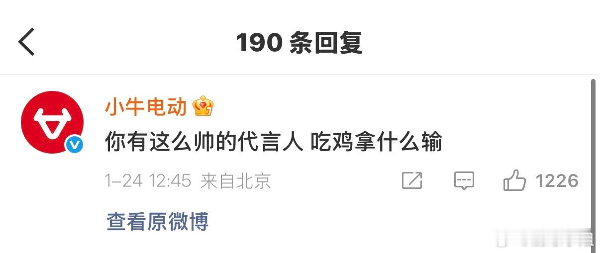 吴磊小牛电动全球品牌代言人 终于官宣了!小牛前几天还在和平精英的官宣微博下面夸人家代言人帅,转头就真的把吴磊请过来了,这个行动力我给满分🎉🎉吴磊身上向前冲的少年气和小牛的品牌内核完美契合,希望接下来这对少年与小牛的组合能一路狂飙!