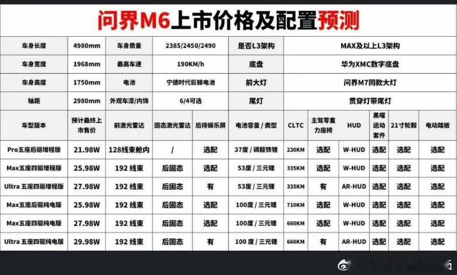 现在爆料的M6配置看着玄乎,但问界的产品向来实打实,没有官方确认的都不算数