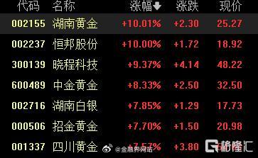 【史诗级暴涨!黄金、白银彻底失控,一场更大风暴将来袭?】 现货黄金历史首次突破5000美元/盎司,白银、铂金等贵金属价格大涨,国内金价及期市沪银等品种上涨,港A股贵金属股集体走强。本周美加中关税冲突、日元干预威胁、美国政府停摆可能性加大三大黑天鹅因素,推动资金涌向避险资产。布鲁金斯学会研究员Robin Brooks认为黄金上涨是全球债务危机开端,高盛上调黄金年底目标价至5400美元,各国央行黄金购买强劲但非今年价格大涨主因。详情:网页链接