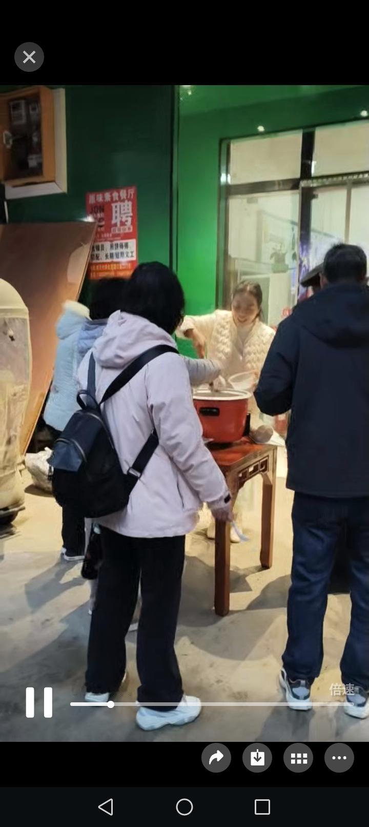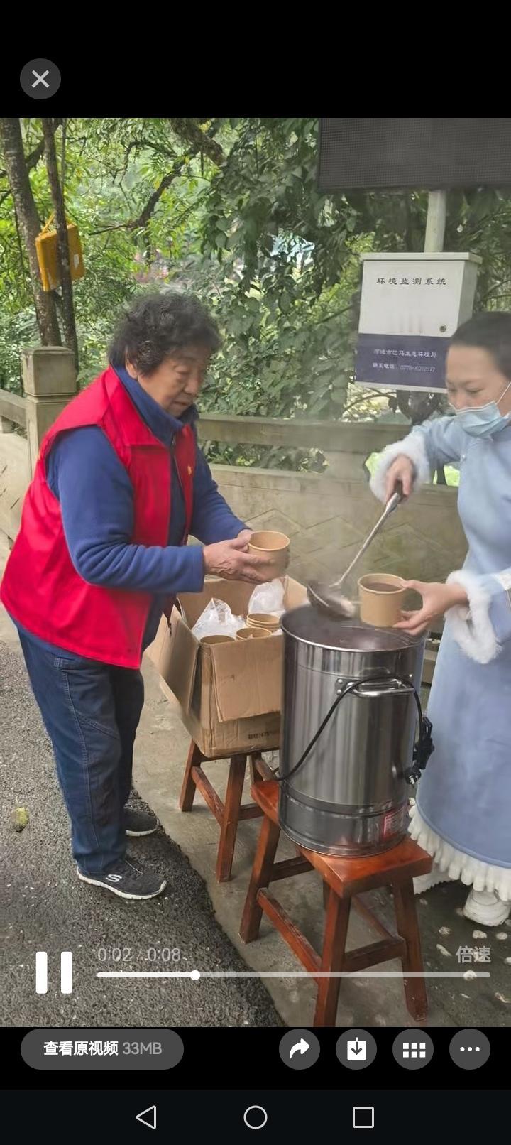 腊八节的长寿巴马 多窗口布施腊八粥 今天早晨巴马的天空阴沉沉的,还不时飘着蒙蒙细雨。 正赶上圾月大集,想去买些蔬菜,很少赶集的我们也凑了个热闹。 走到世纪养生园门口,人们拎着一次性打包好的腊八粥,有说有笑的回家或者也去赶大集。 知道的消息我和老伴来到了素食店门前有四五位志愿者正在给大家分发粥品。 因为志愿者告诉我这份粥品是店里用十几种食材经过几个小时熬成的,非常健康营养。 买过几份蔬菜在桥头出口回来的时候一家理疗店几位功德主也在布施养生粥。 特别是一位住在长寿村的朋友发来图片消息,让我们看到那里的施粥者身着净服,每送出一碗粥都要深思一理,真是太让人感动和感慨了。 如果您是一个有福之人,可能会遇见这样的场景。如果您是一个大爱之人,可能会参与这样的布施。 巴马就是这样的一个可以收获大爱,可以布施大爱,可以实现许多不可能的地方。 腊八节在一碗温暖的八宝粥中开启。住院有爱的人们一生幸福,永远安康[比心][比心][比心][祈祷][祈祷][祈祷]