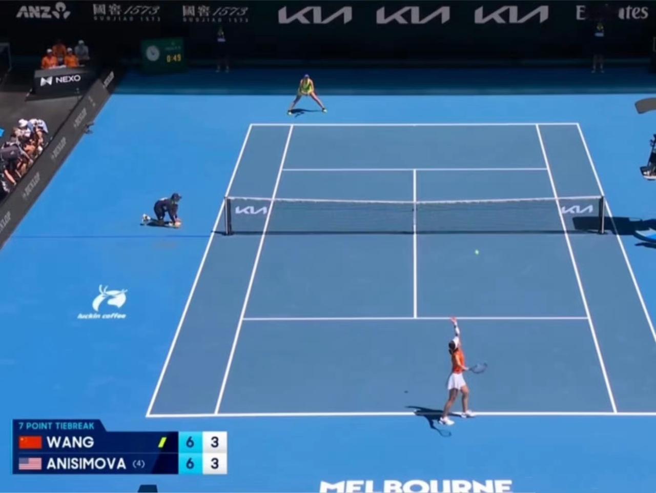 能和阿曼达打到抢七,已经很牛了!第一盘可惜了,王欣瑜打得不错,但抢七没把握住,细节方面有待提升。如今的王欣瑜在力量和速度方面提升都不少,综合实力真是进步了,可以和顶尖高手较量了。 第二盘打完第三局,王右1-2落后,王右申请医疗暂停。 这个时候需要调整一下,时机选择很好。