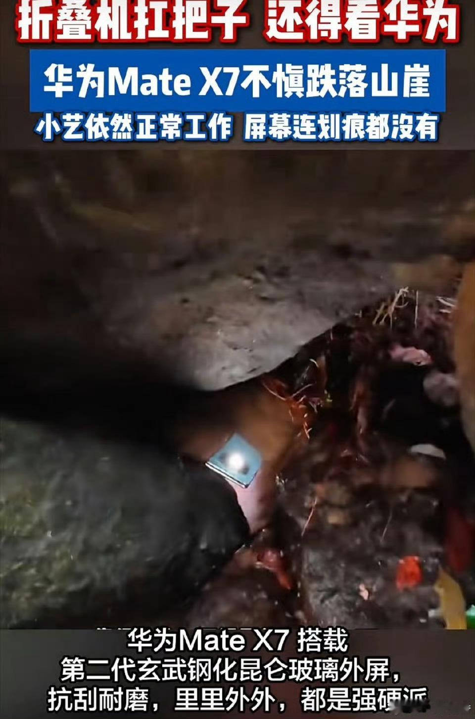 华为手机户外高处跌落还能用华为品质是真的过硬,Mate X7超可靠折叠玄武架构,加上外屏第二代玄武昆仑玻璃,杠杠的!折叠屏从高处跌落屏幕没摔碎