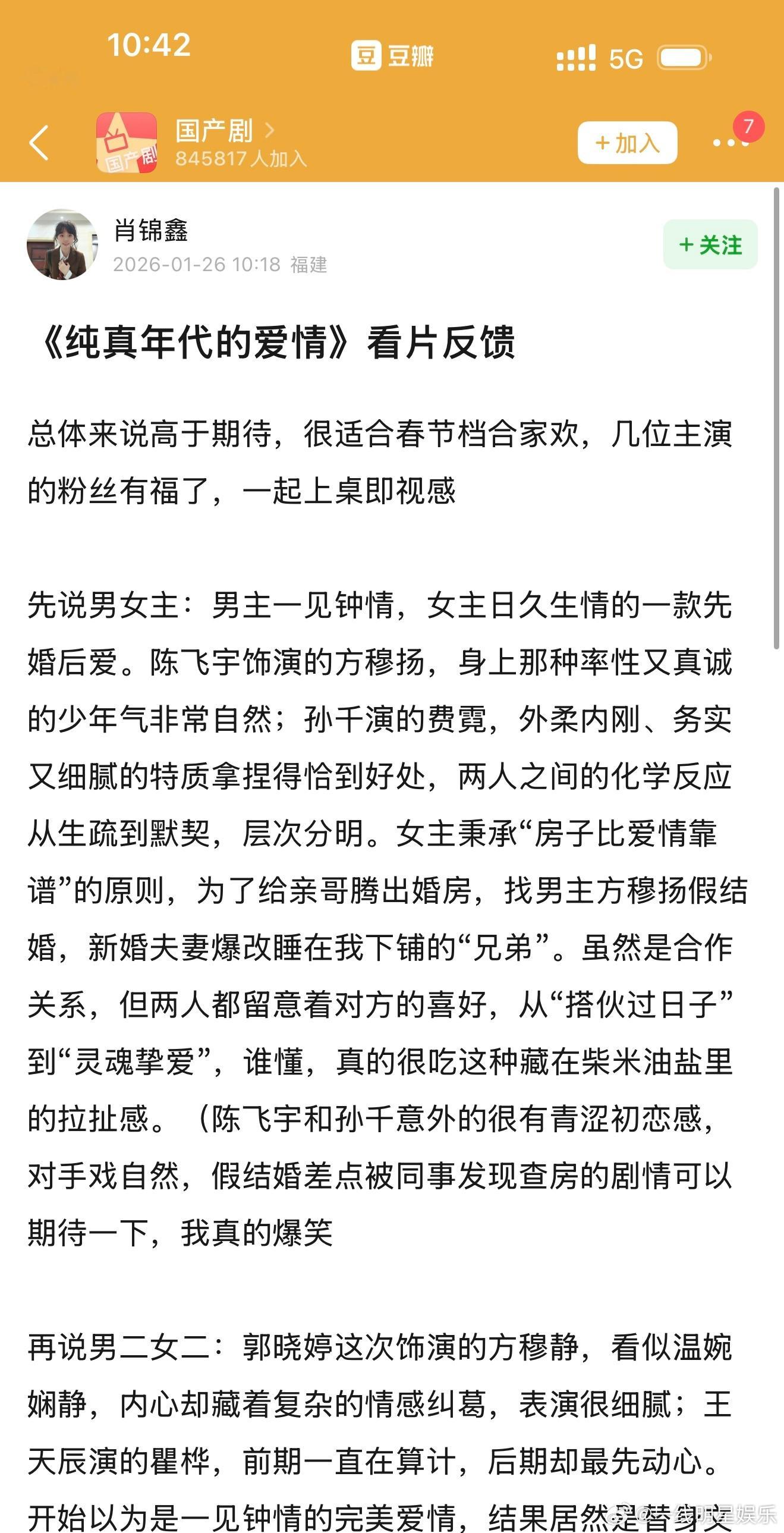 纯真年代的爱情口碑 看完《纯真年代的爱情》repo直接狠狠期待!陈飞宇孙千的70年代先婚后爱太好嗑,8平米筒子楼的协议婚姻,在柴米油盐里磨出真心,CP感溢出屏幕。郭晓婷王天辰二搭氛围感拉满,文艺青涩的暧昧张力十足。剧组复刻年代细节超用心,改名后上星呼声高,坐等定档解锁这份纯纯的年代爱恋!纯真年代的爱情